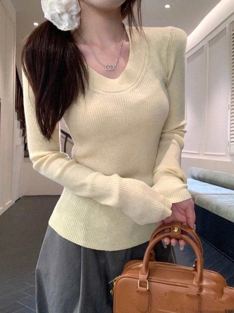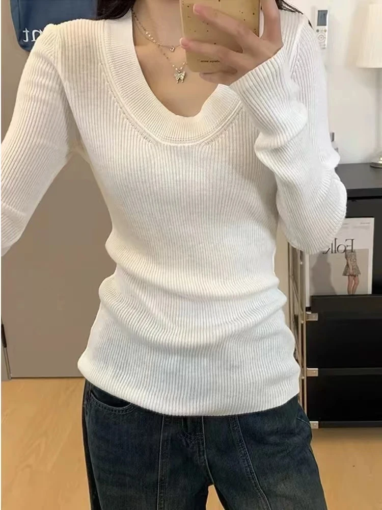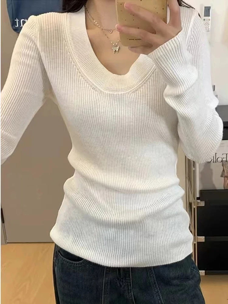 Maglione sottile autunnale da donna o collo pullover lavorato a maglia maglieria a maniche lunghe top abiti di moda coreani maglioni slim basic solidi