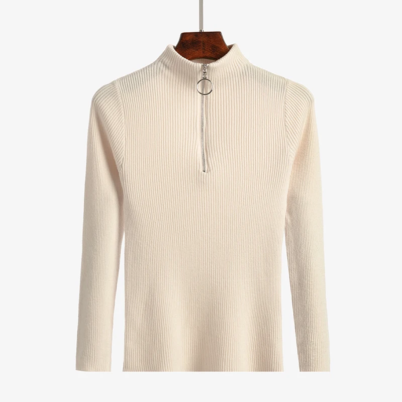 Maglioni lavorati a maglia solidi moda donna Maglione vintage a maniche lunghe con zip basic a mezzo collo alto Pullover femminili Top casual chic