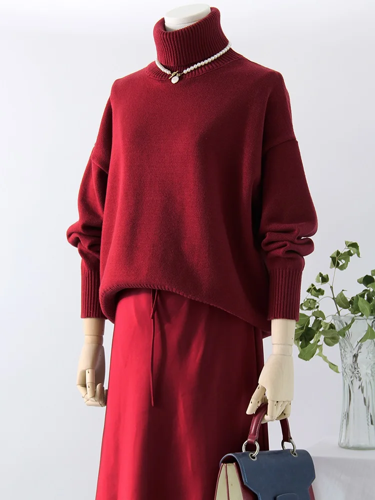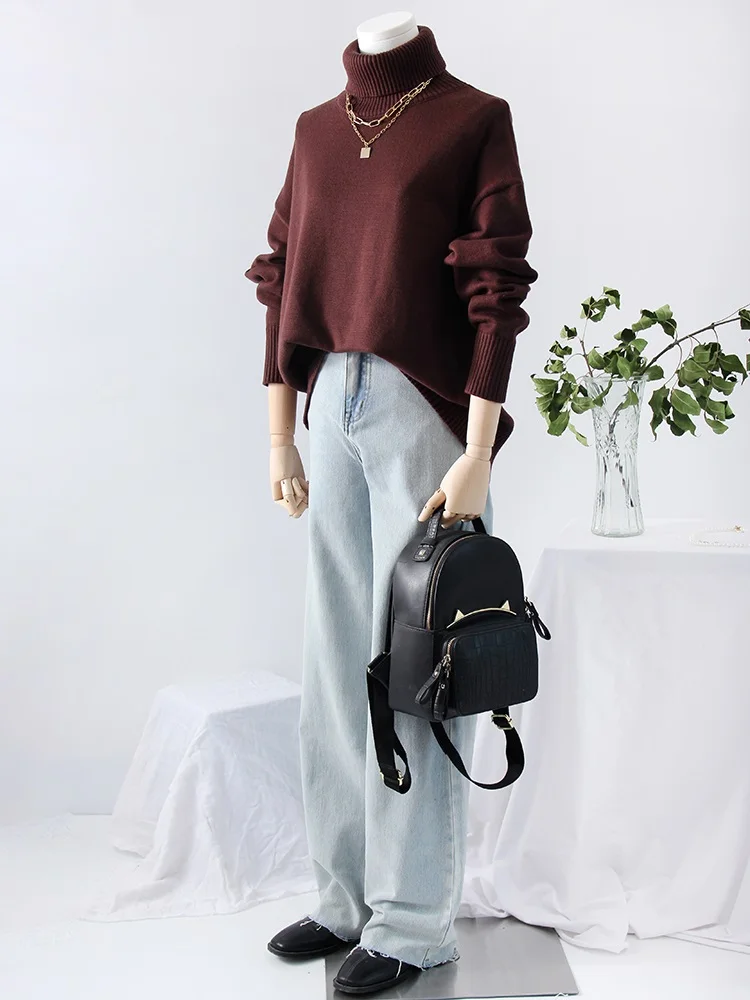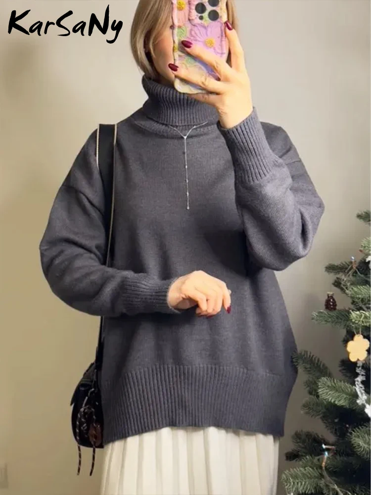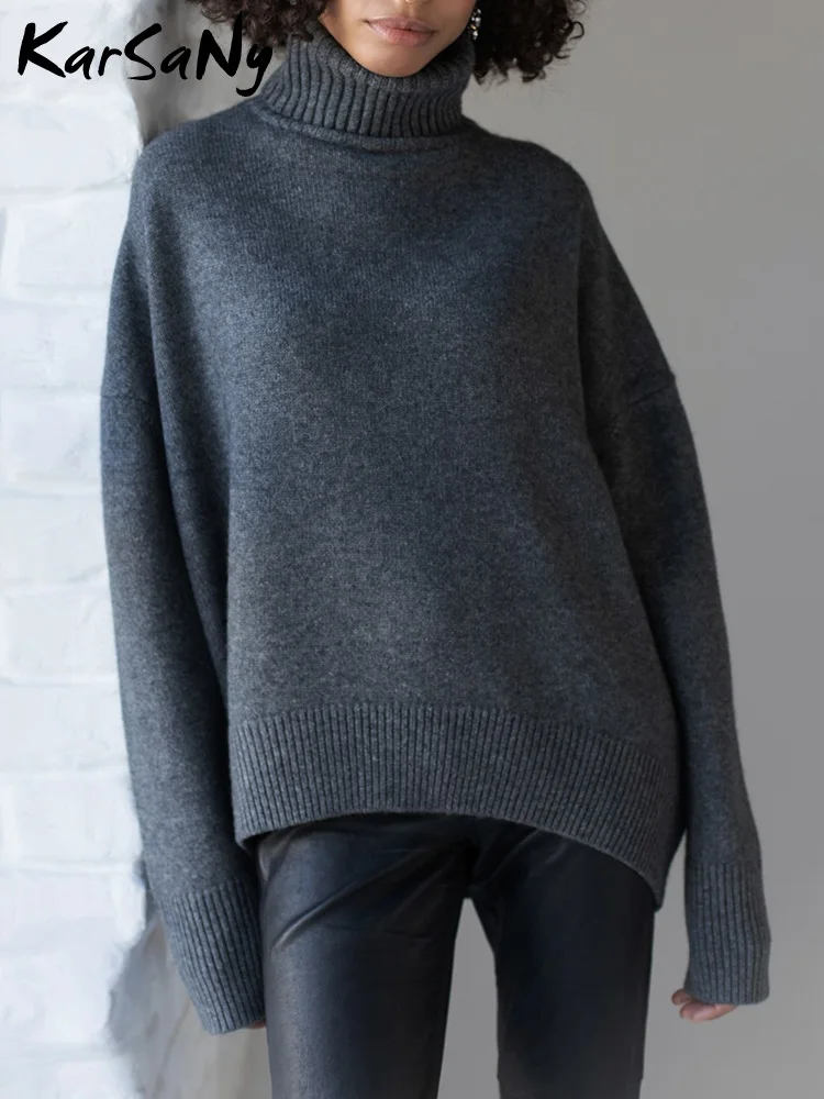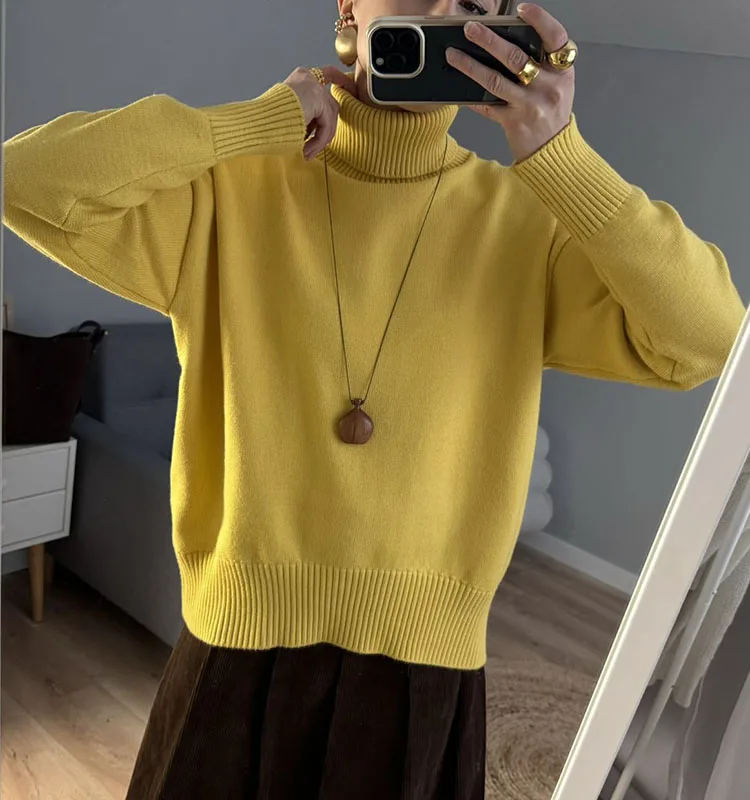 Maglioni spessi da donna Dolcevita oversize da donna Pullover bianchi caldi invernali Maglione oversize a collo alto lavorato a maglia per top da donna