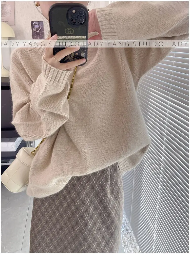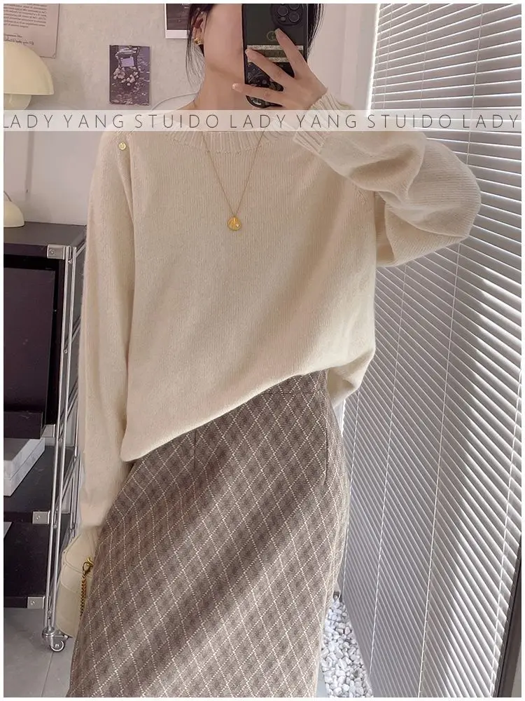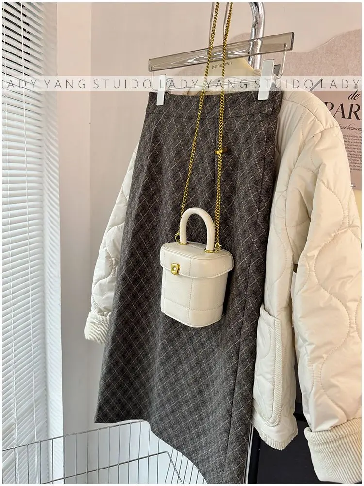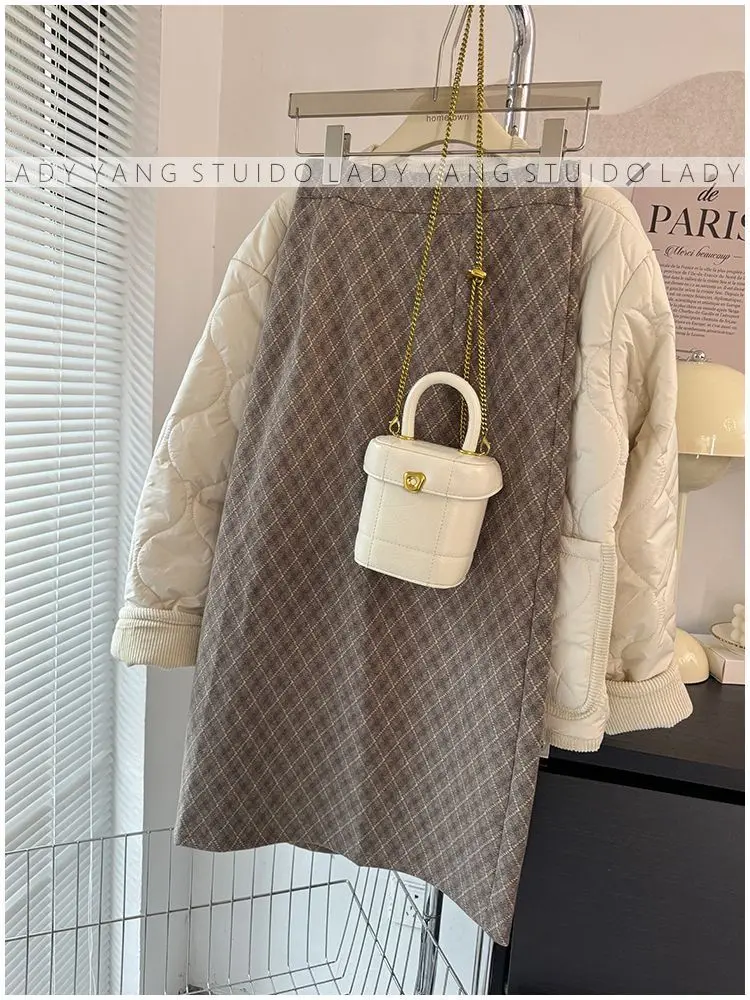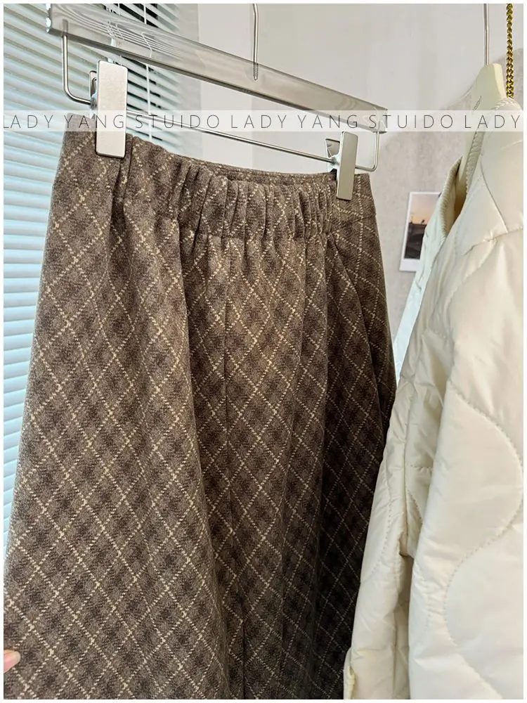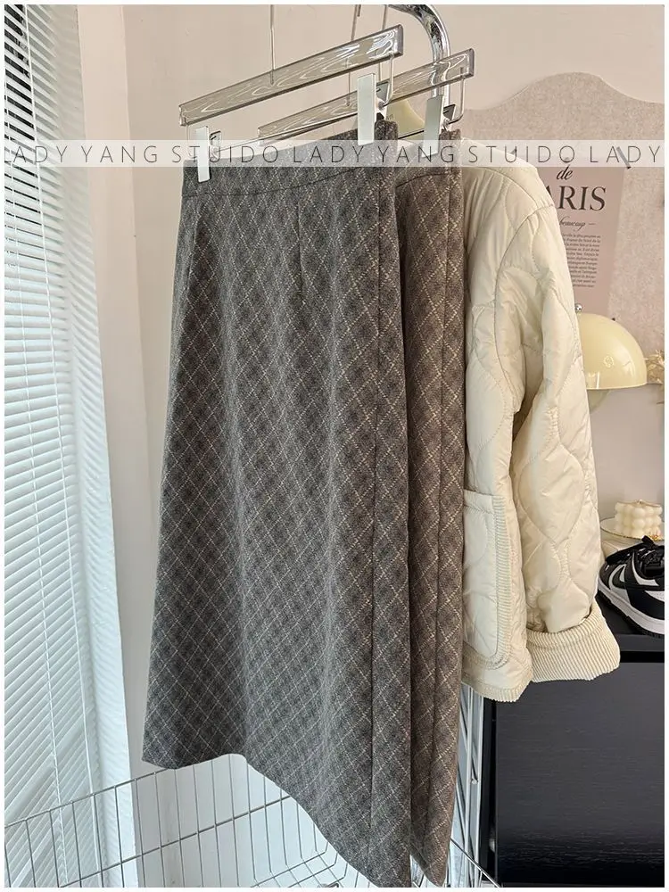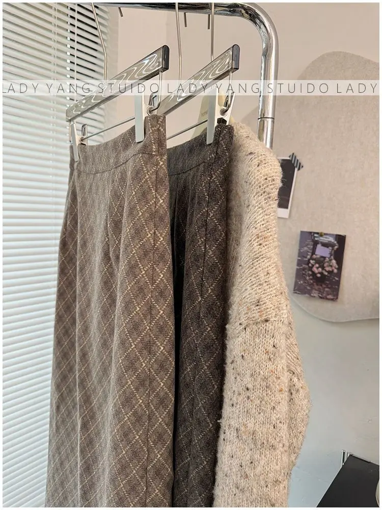 Maillard Gonna di lana dritta con spacco a vita alta di media lunghezza scozzese con diamanti retrò ispessiti autunno e inverno