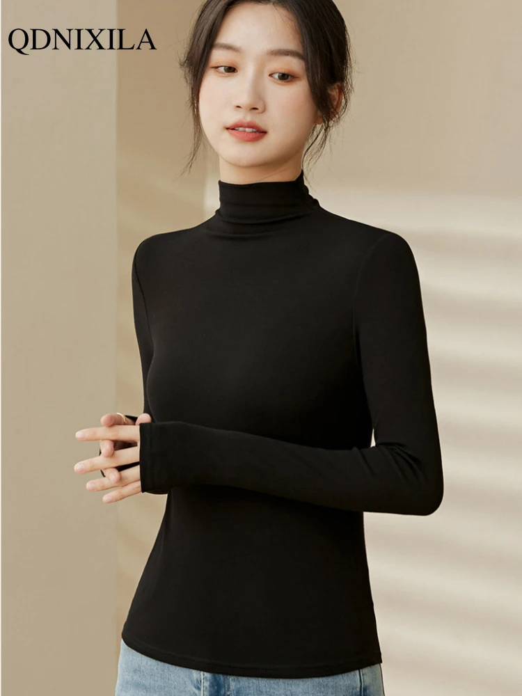 Mezza dolcevita Modal Bottoming Shirt donna autunno inverno nuova usura interna moda Slim nero addensato manica lunga Top Pullover