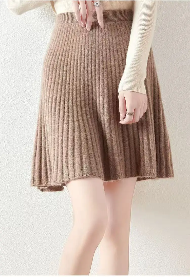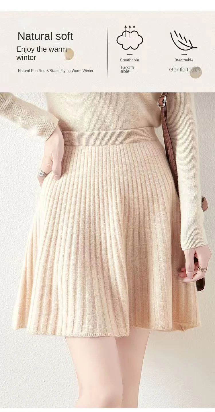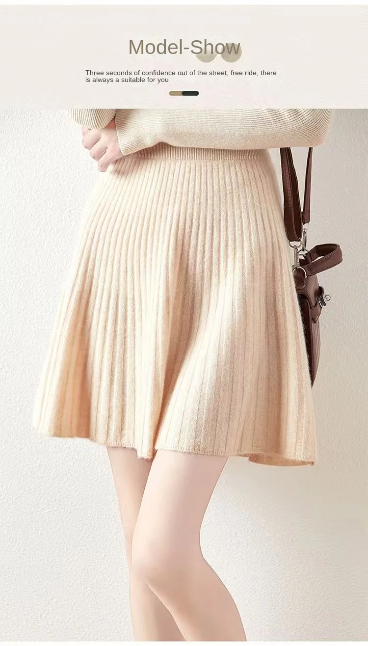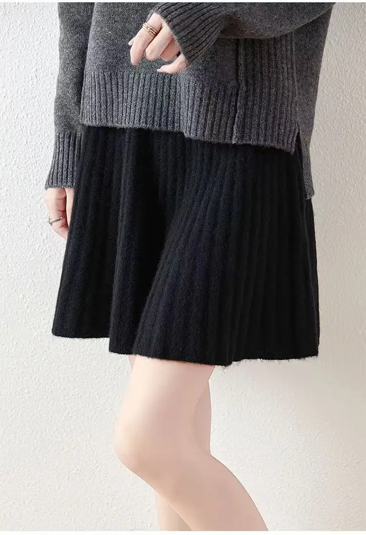 Recensisci per primo “Minigonna in lana merino al 100% Gonna a pieghe lavorata a maglia in vita elastica tinta unita alla moda autunno inverno da donna coreana” Annulla risposta