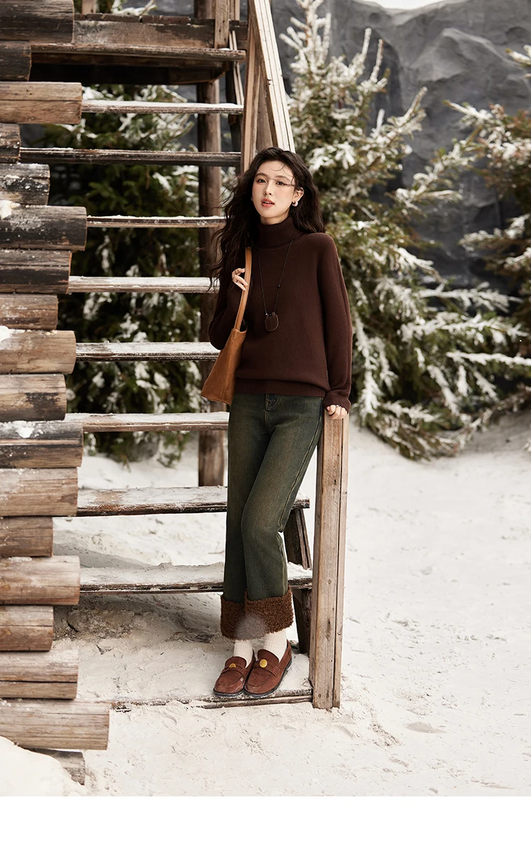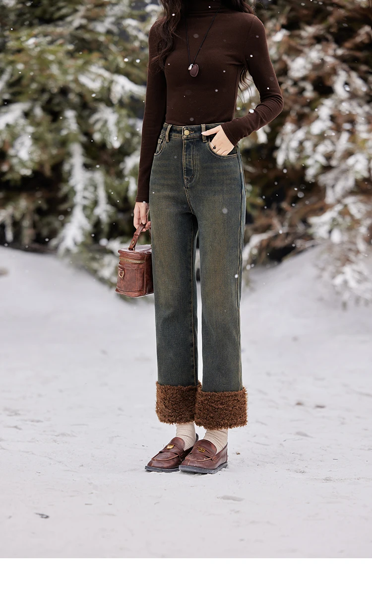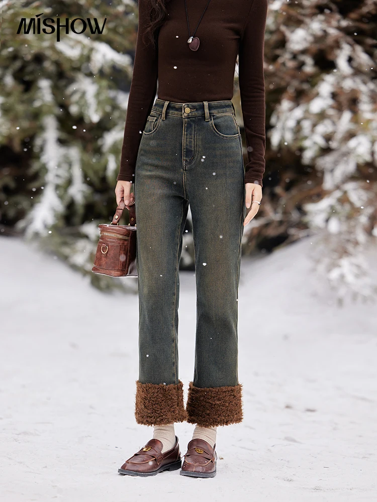 MISHOW Jeans in velluto Bootcut dritto Vita alta Slim Fit Colore Clash Pantaloni Denim spesso Jeans caldi Donna Office Lady MXD58K0828