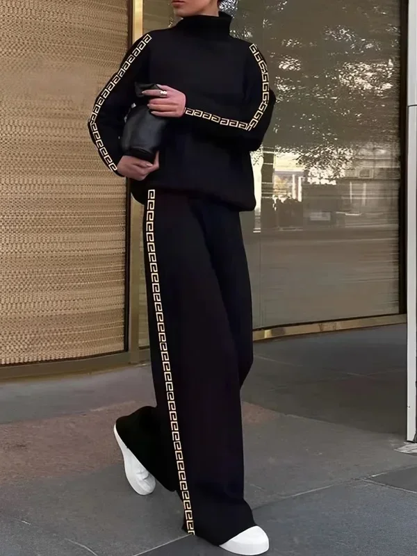 Missuoo 2025 Set di pantaloni casual primaverili per donna Felpa ampia con vestibilità ampia a righe laterali Camicia con colletto alla coreana Top e pantaloni a vita alta