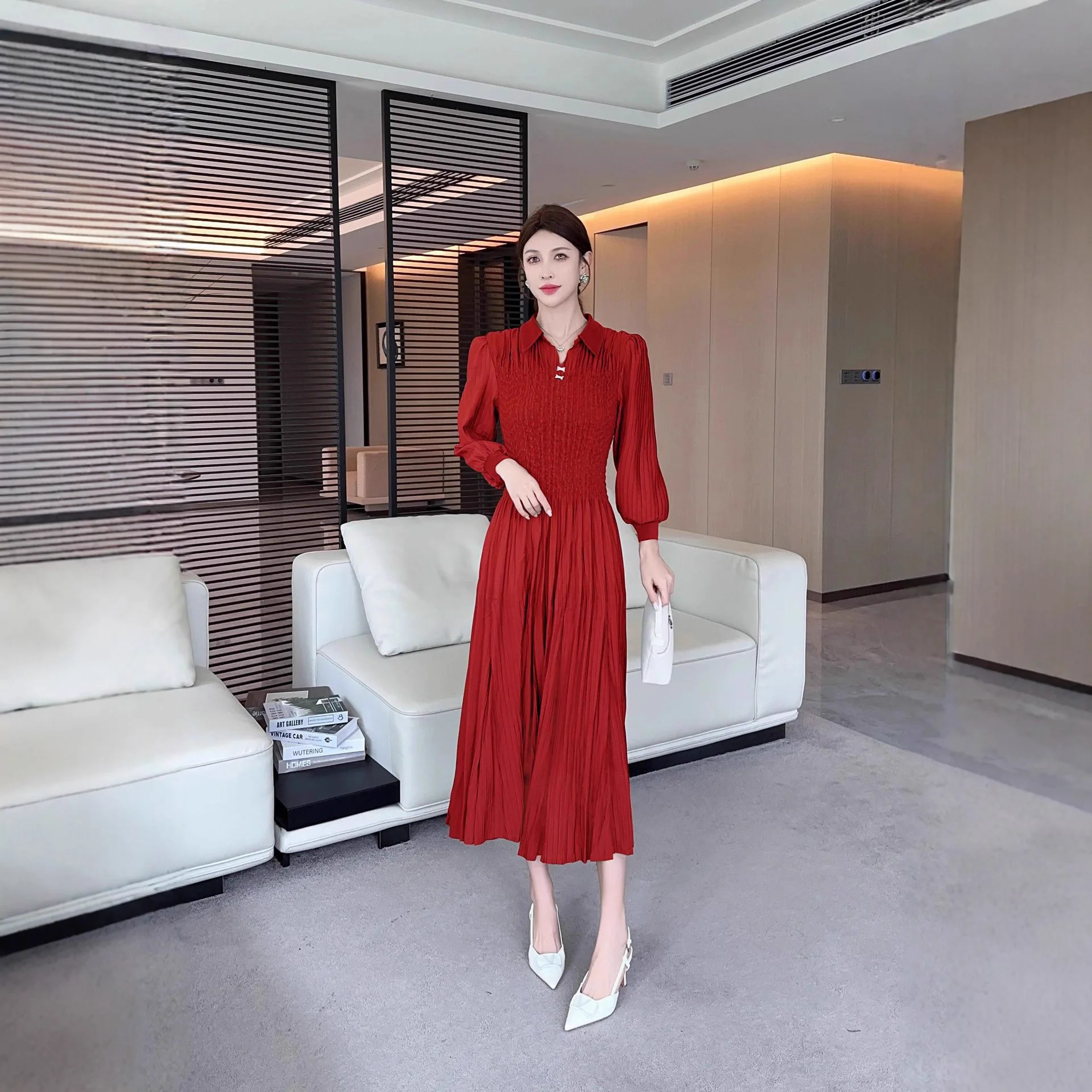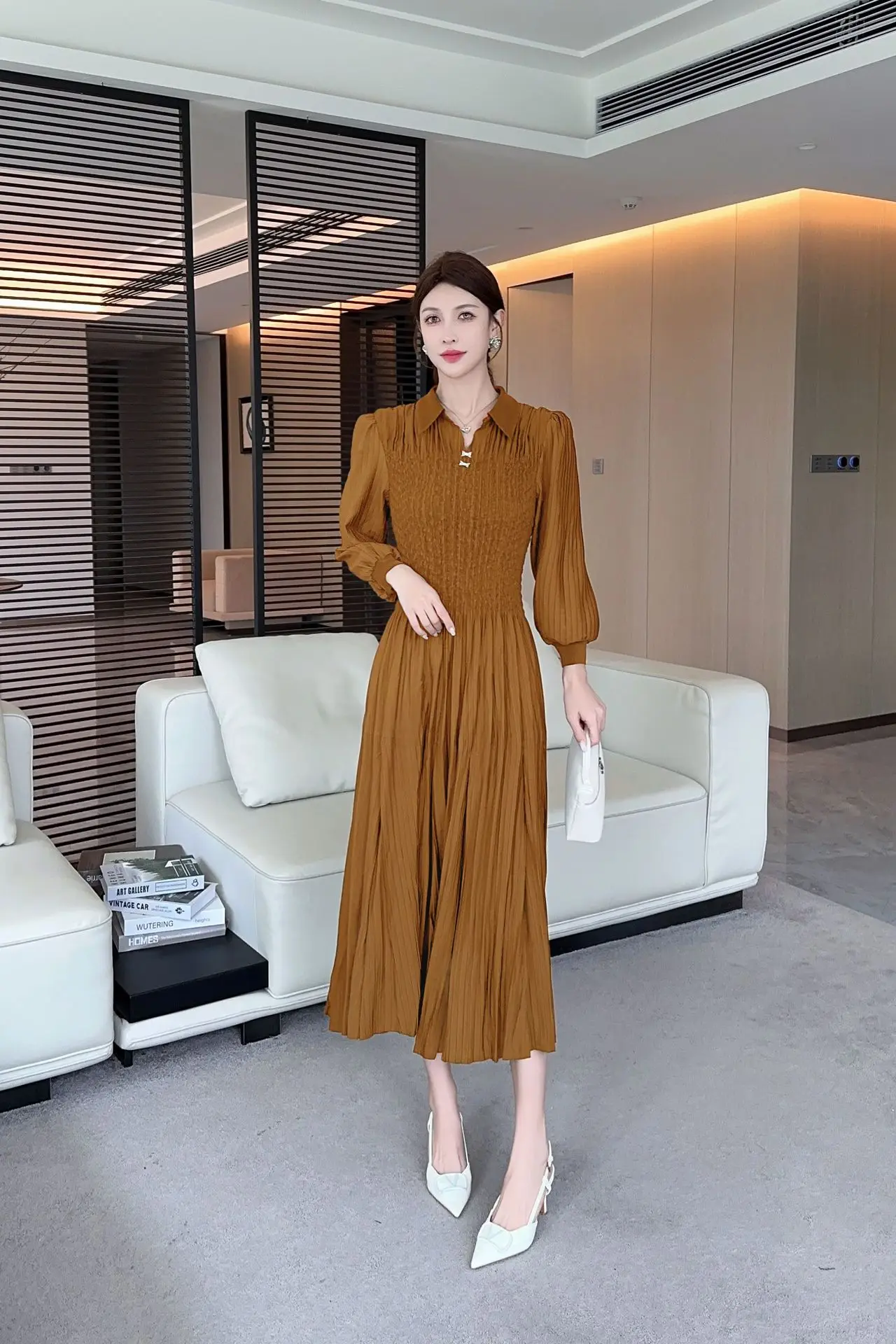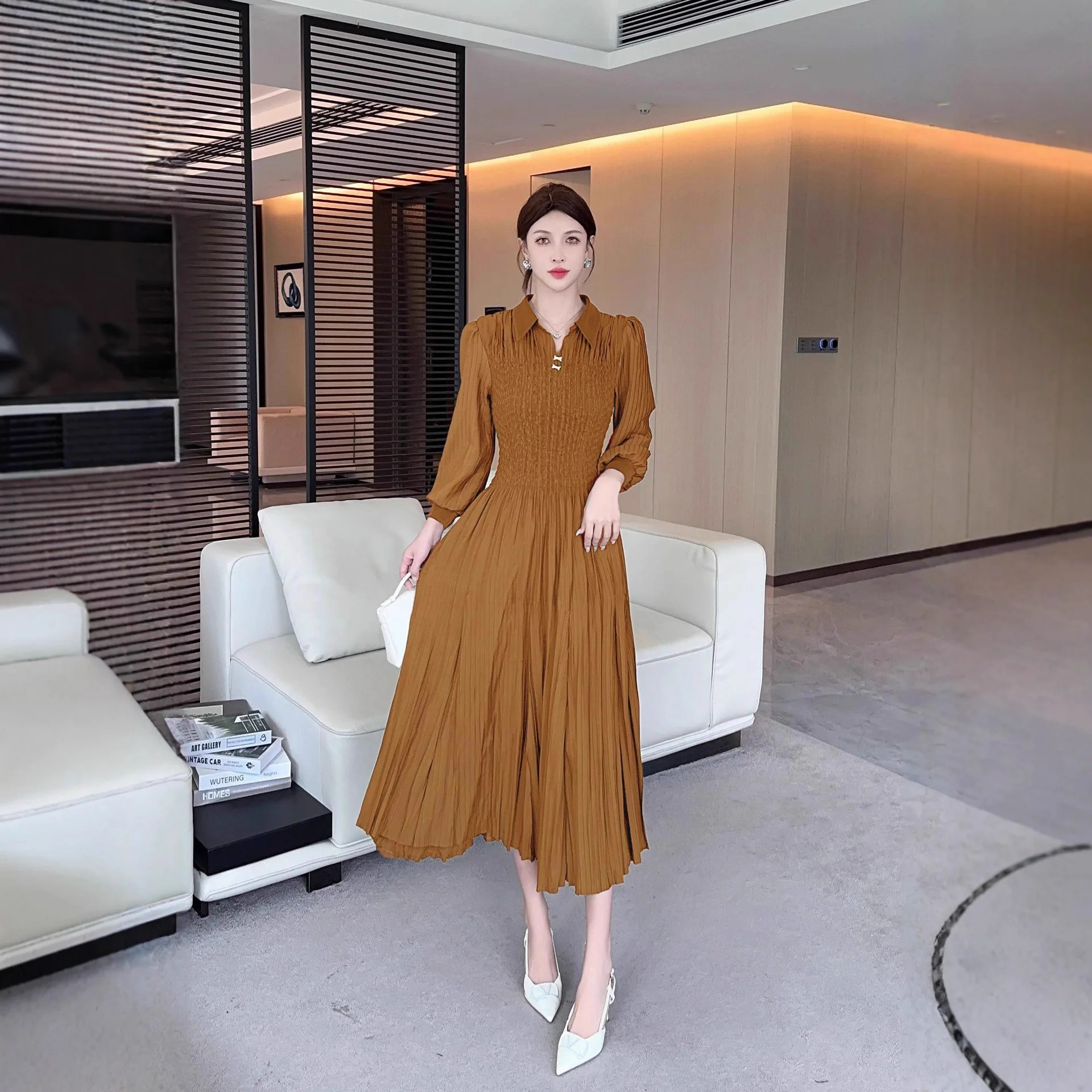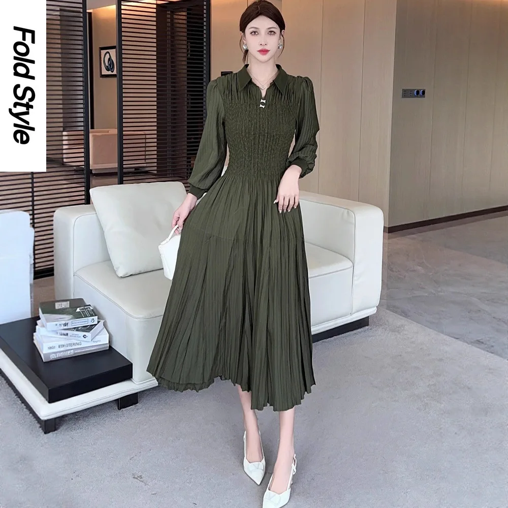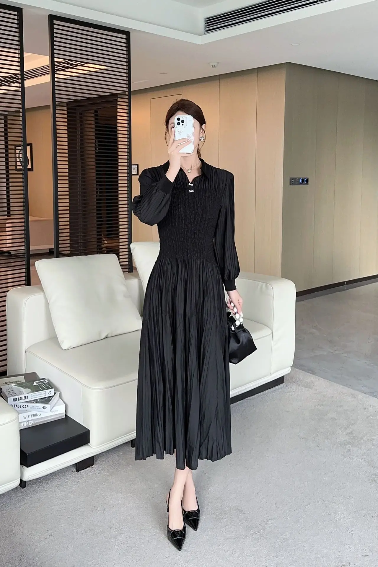 Miyake Abito a pieghe ampio con maniche a lanterna di fascia alta Gonna lunga da donna con temperamento francese a vita sottile autunnale