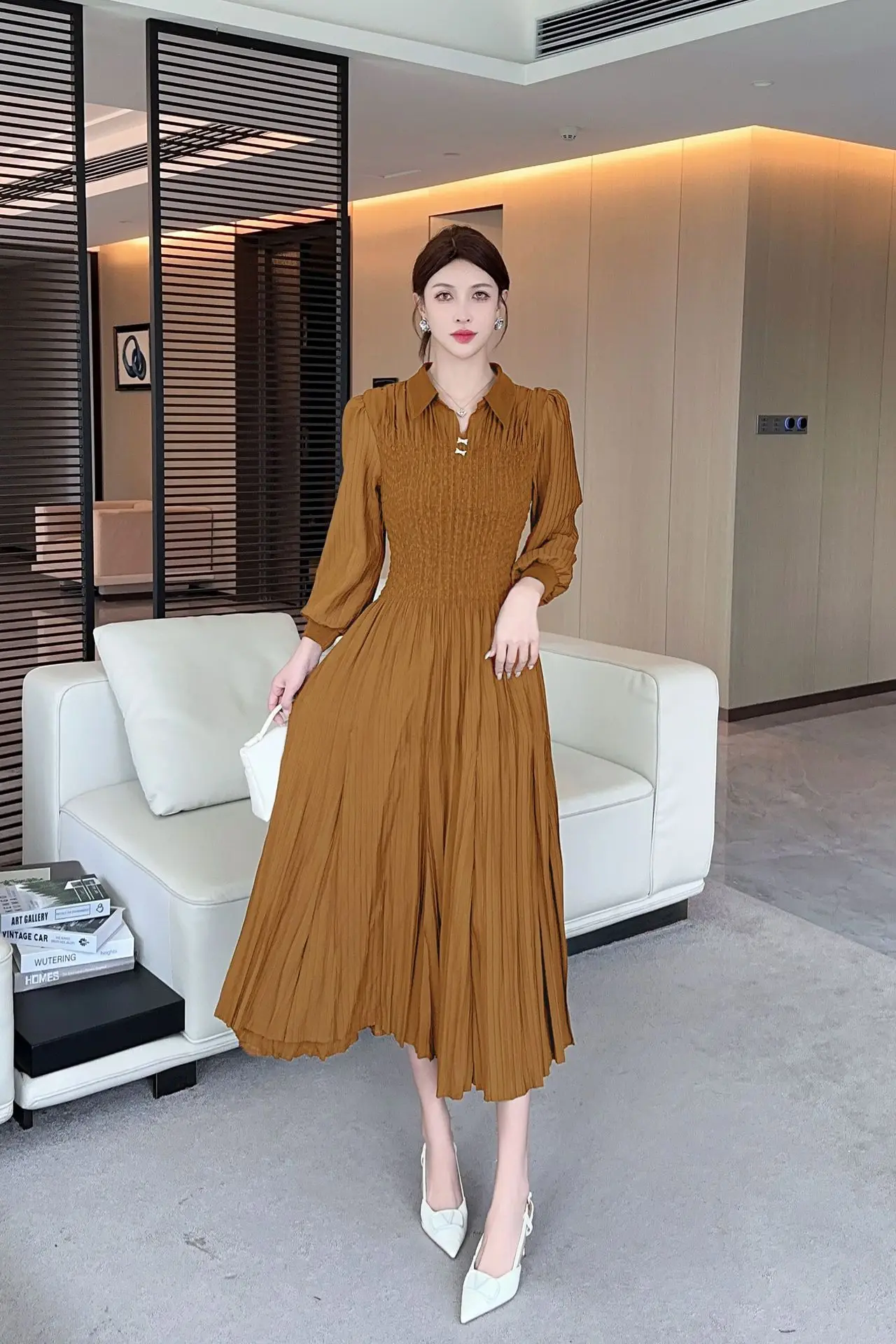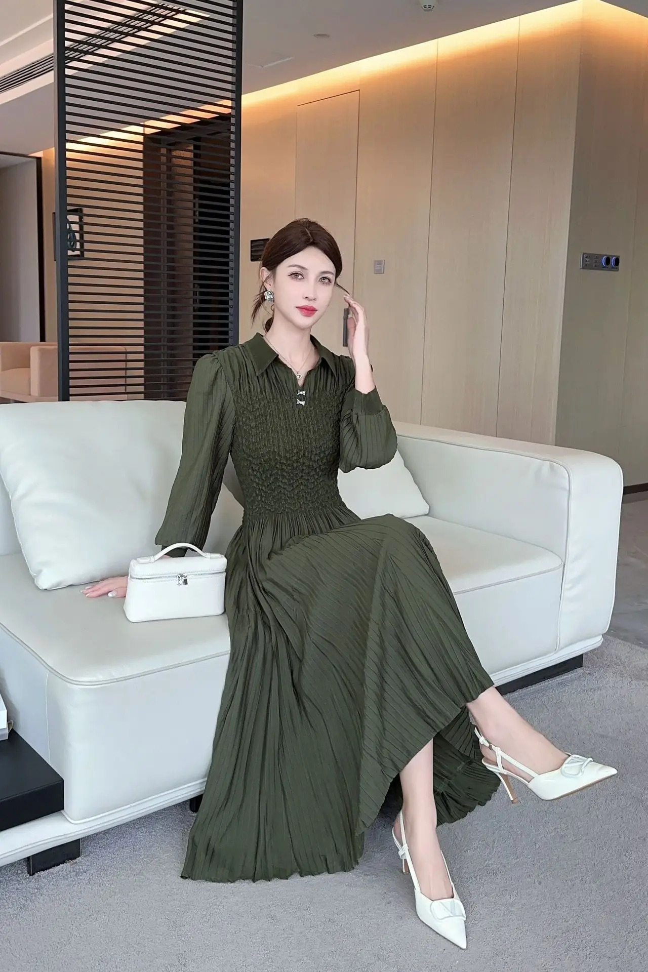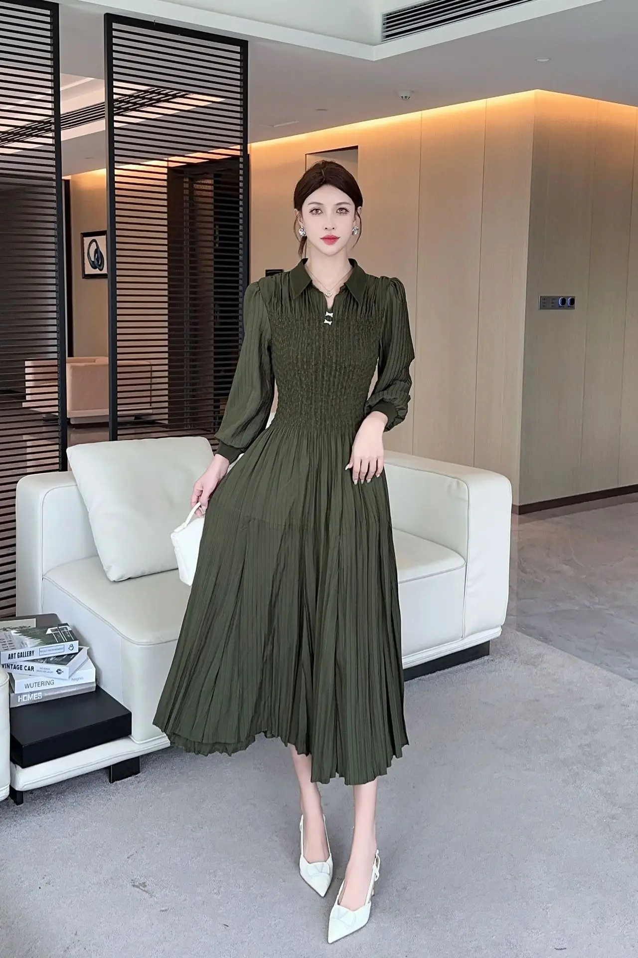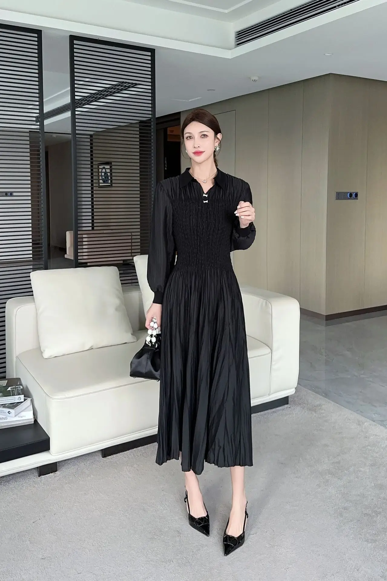 Miyake Abito a pieghe ampio con maniche a lanterna di fascia alta Gonna lunga da donna con temperamento francese a vita sottile autunnale