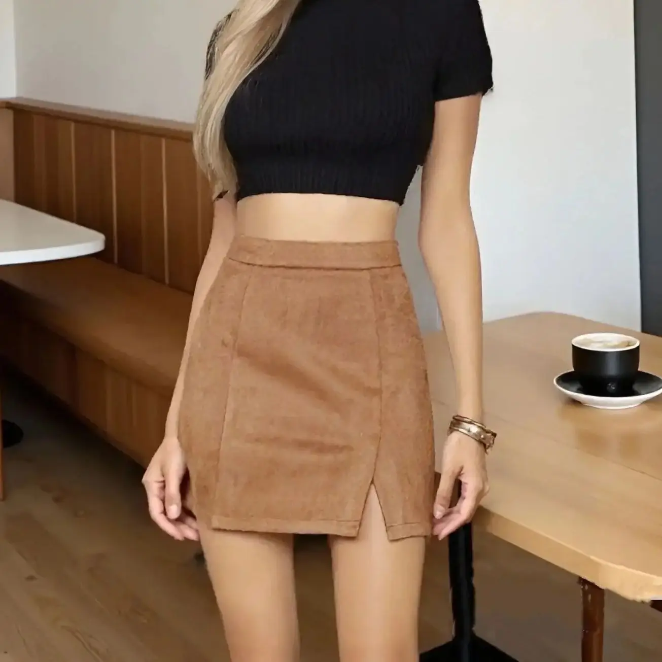 Moda autunno inverno gonne in pelle scamosciata donna una linea a vita alta abito corto solido abiti sexy retrò gonna casual da festa di strada femminile