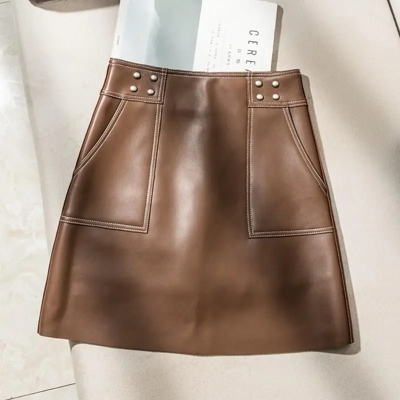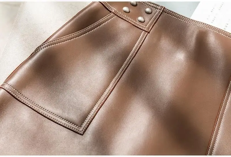 Recensisci per primo “Moda coreana autunno inverno donna tasca con cerniera solida temperamento ufficio signora chic gonna a vita alta corta sottile a trapezio in pelle PU” Annulla risposta