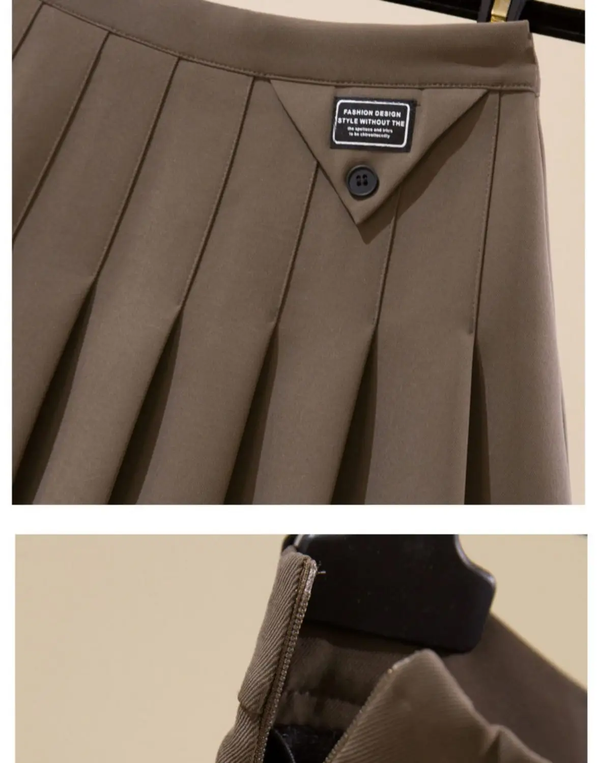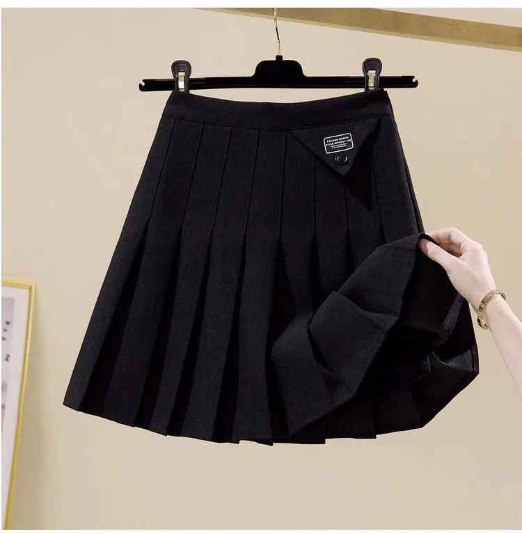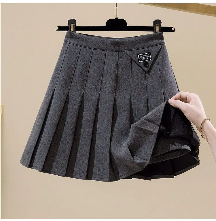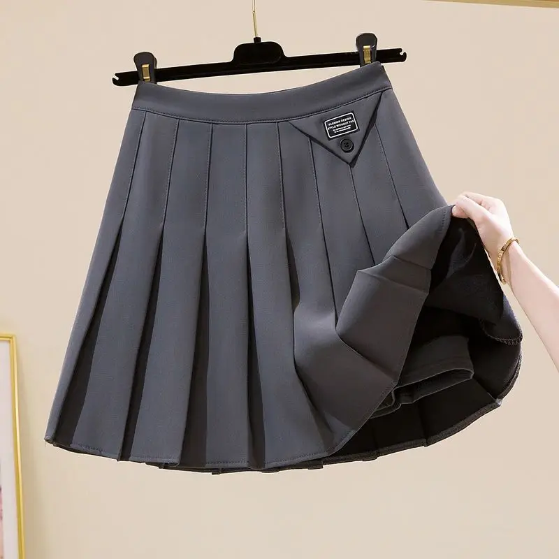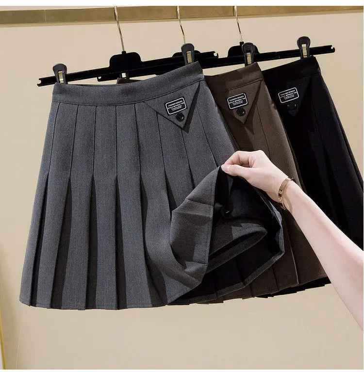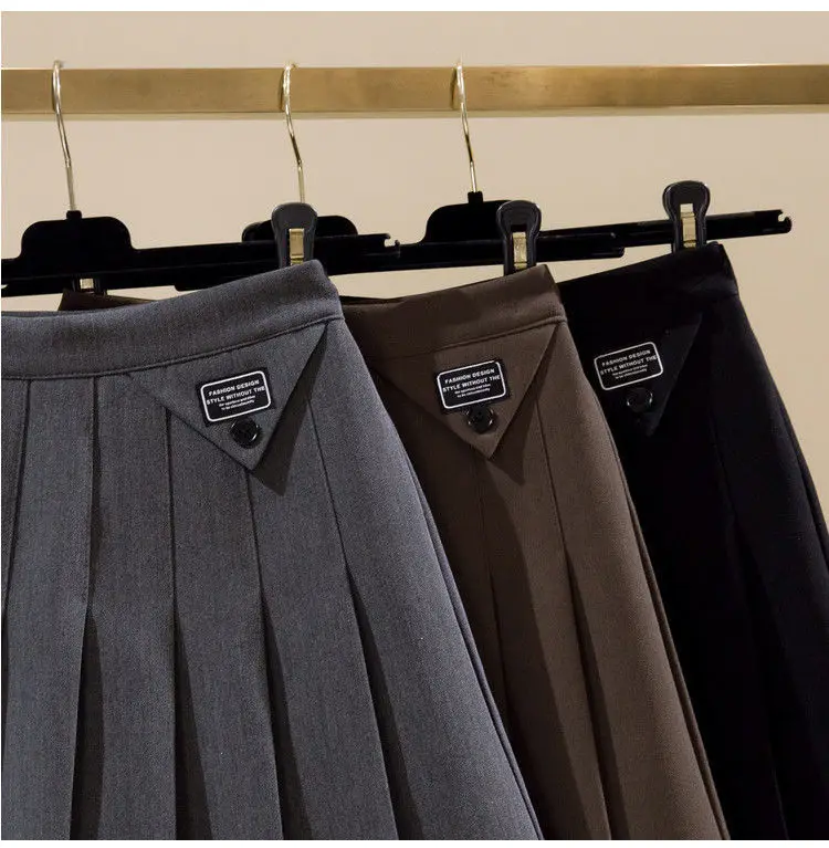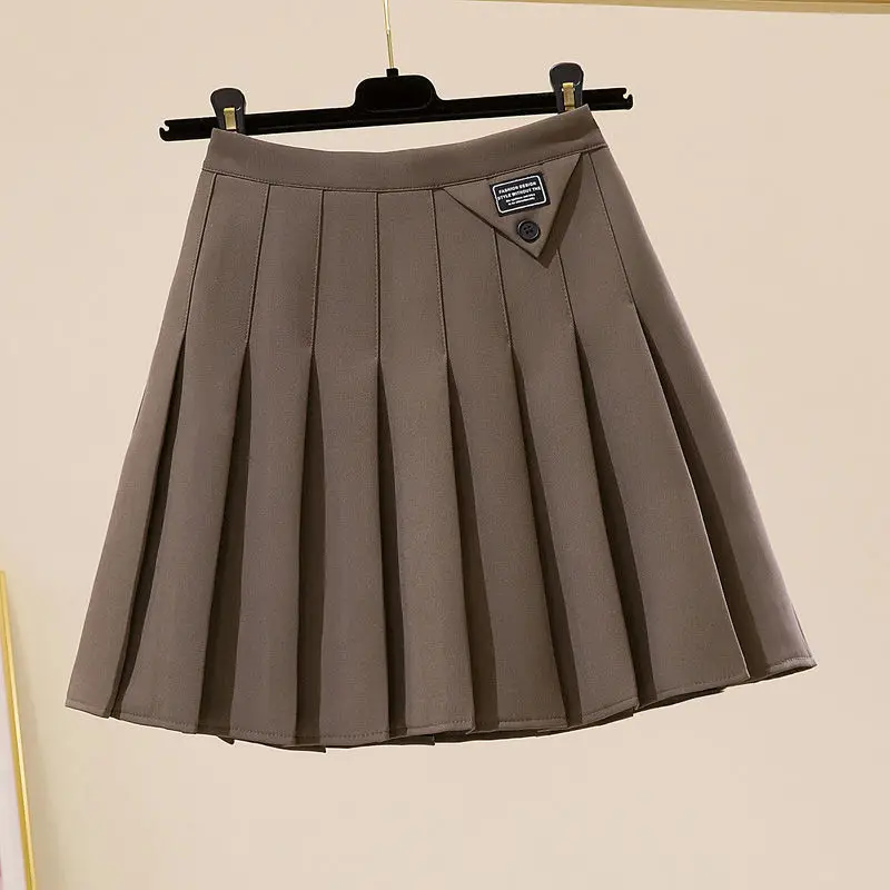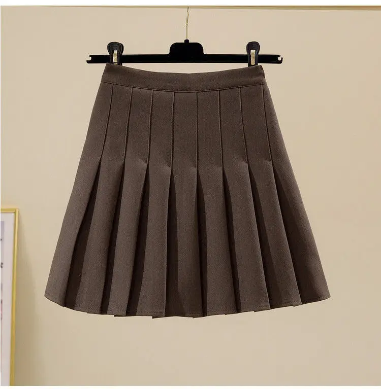 Moda coreana autunno nuove donne solido cerniera pieghettata semplicità stile Preppy Chic vita alta corta sottile gonna a pieghe a trapezio