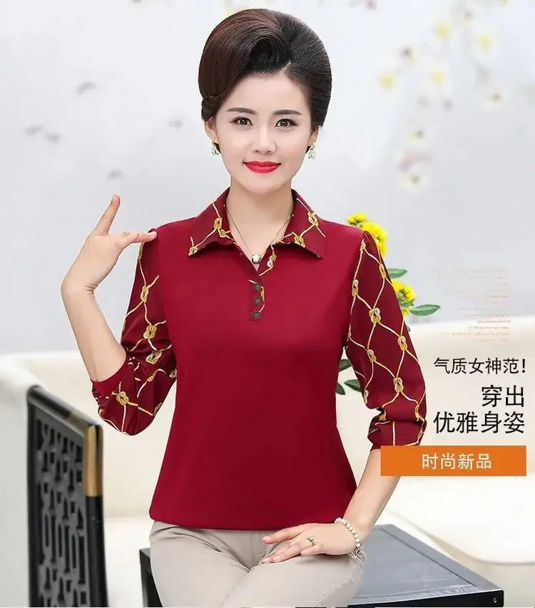 Moda coreana colletto rovesciato manica lunga top femminile Casual pendolare stampato t-shirt pullover abbigliamento donna autunno inverno