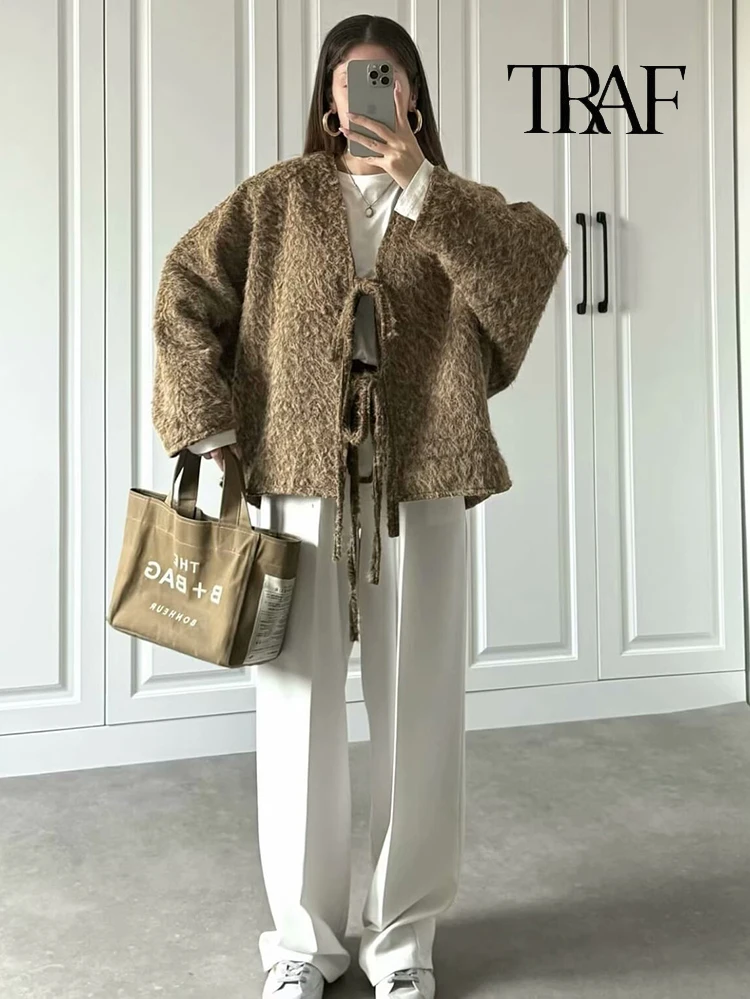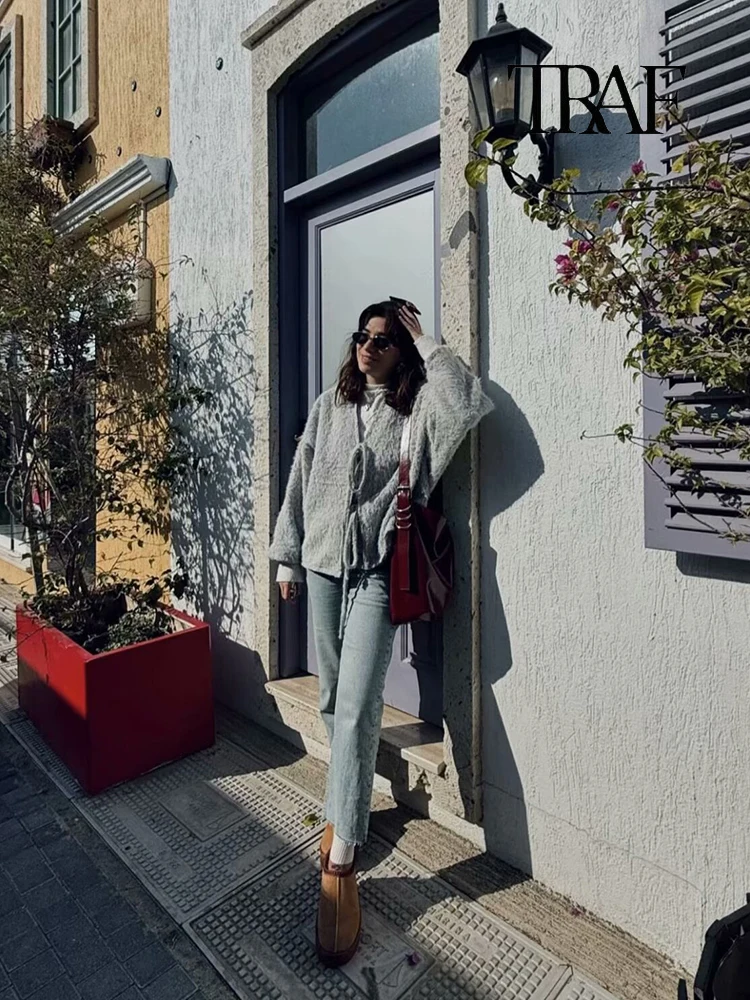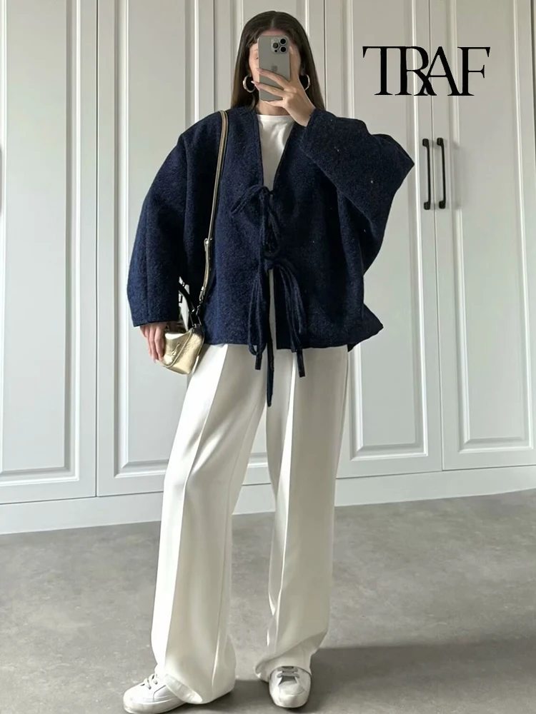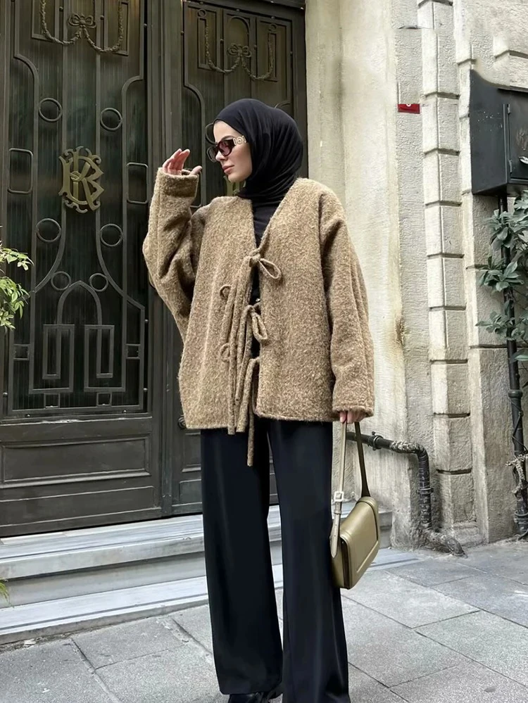 3 recensioni per Moda Donna Cardigan a Maglia Casual Autunno e Inverno Allentato Tinta Unita Scollo a V Cravatta Cappotto Retrò Manica Lunga Giacca Pendolare