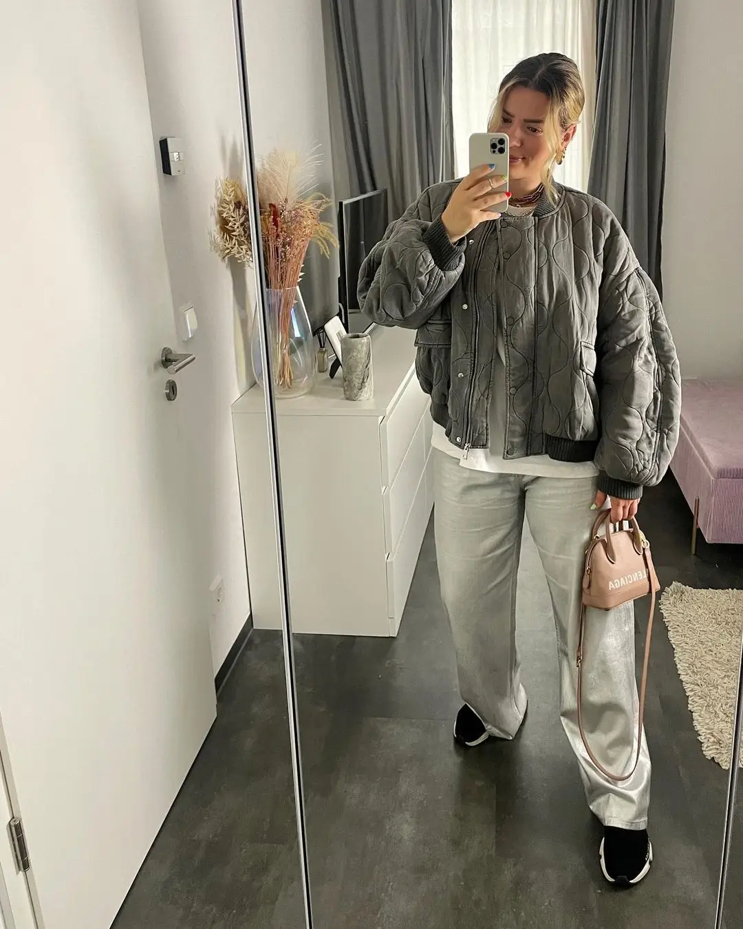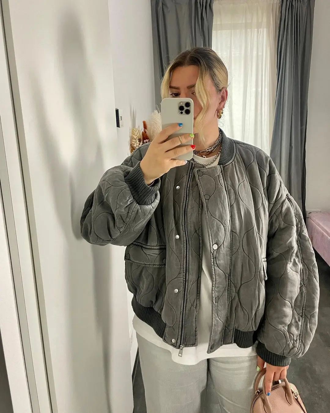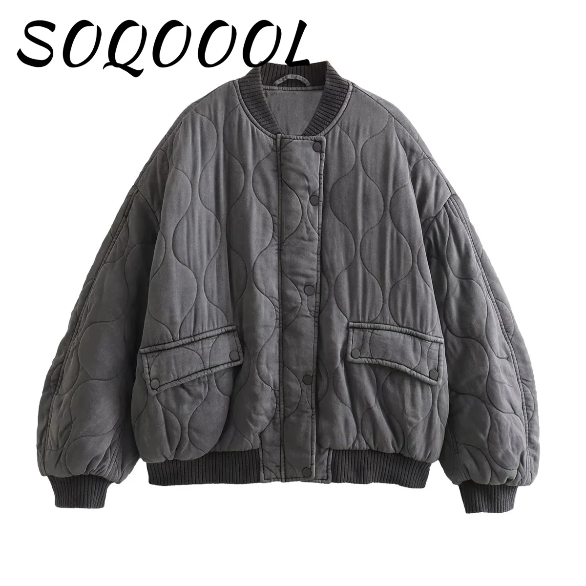 Moda elegante solido bomber giacca cappotto caldo da donna a maniche lunghe allentato casual outwear 2024 club party grigio street wear femminile