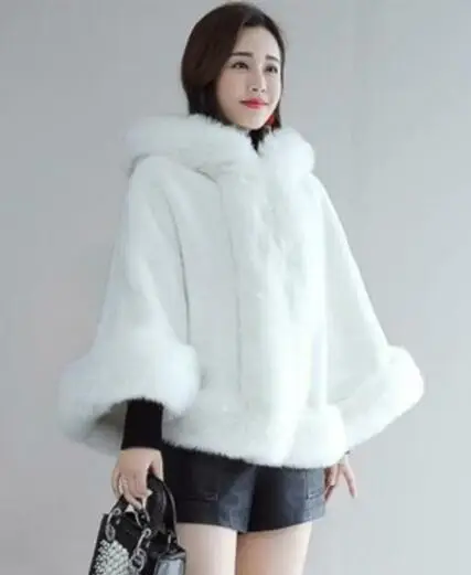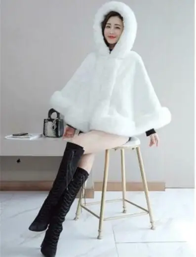 Moda invernale Lady Scialle in pelliccia sintetica Mantello con cappuccio Mantello da sposa Cappotto da sposa Capispalla caldo Accessori da sposa