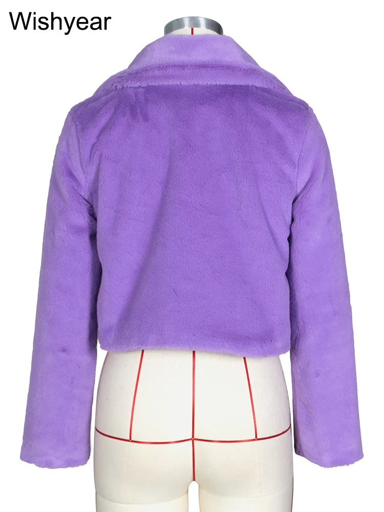 2 recensioni per Moda pelliccia sintetica punto aperto risvolto giacche Crop abbigliamento donna autunno inverno solido manica lunga caldo peloso soffice cappotto esterno usura
