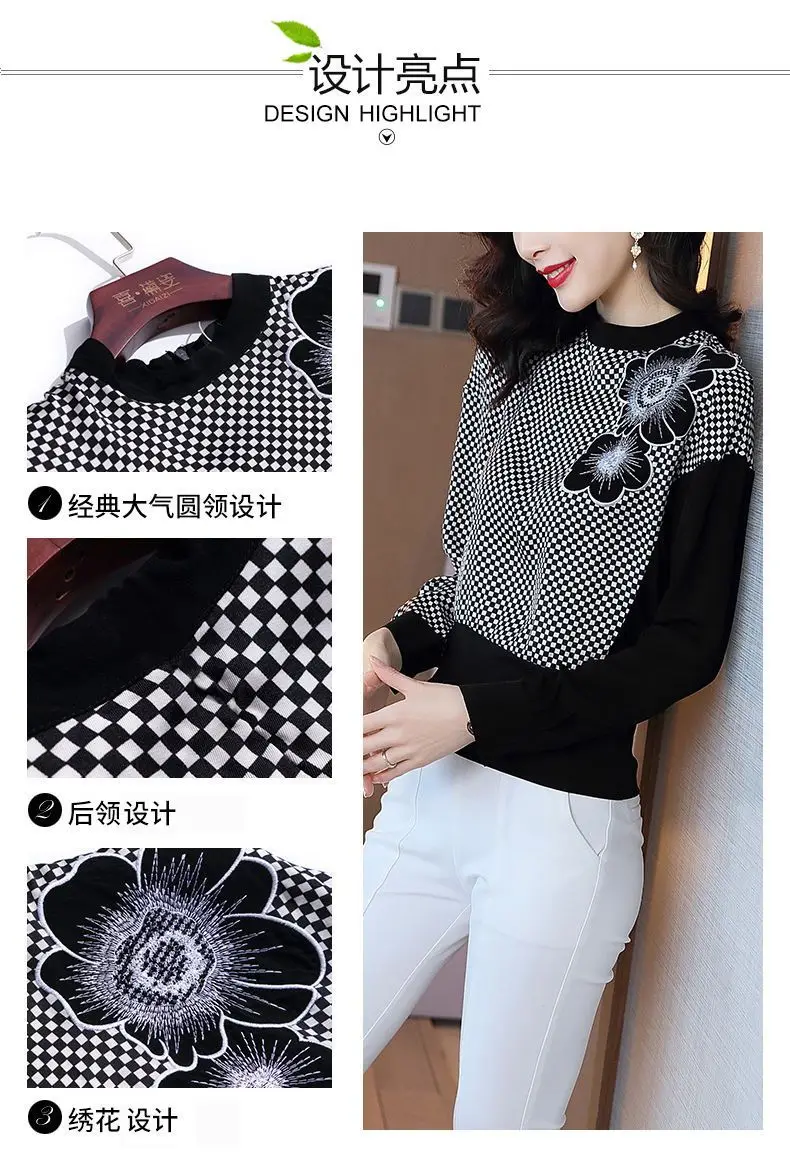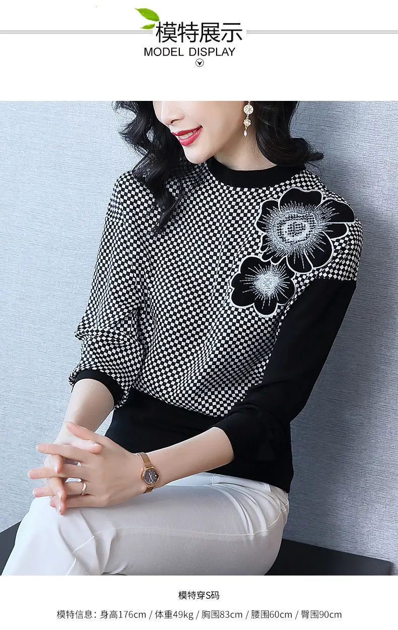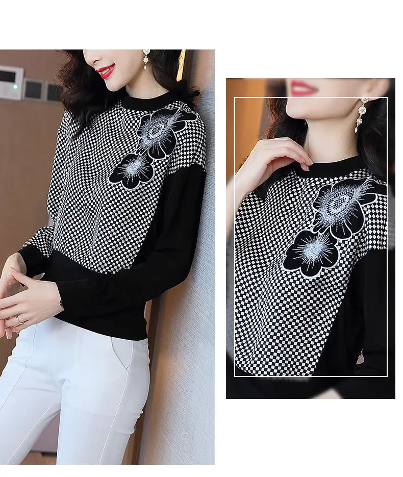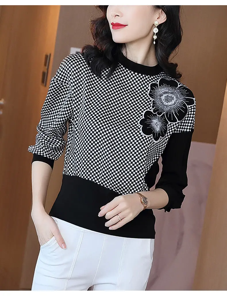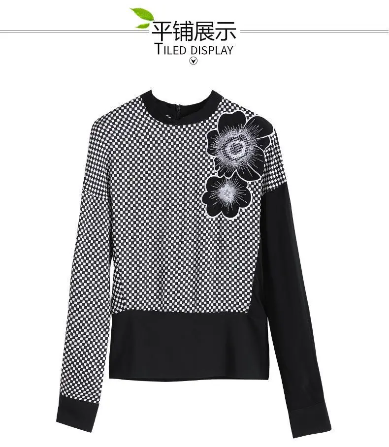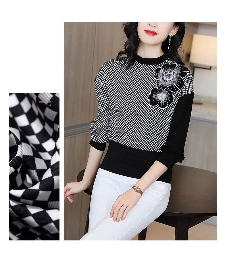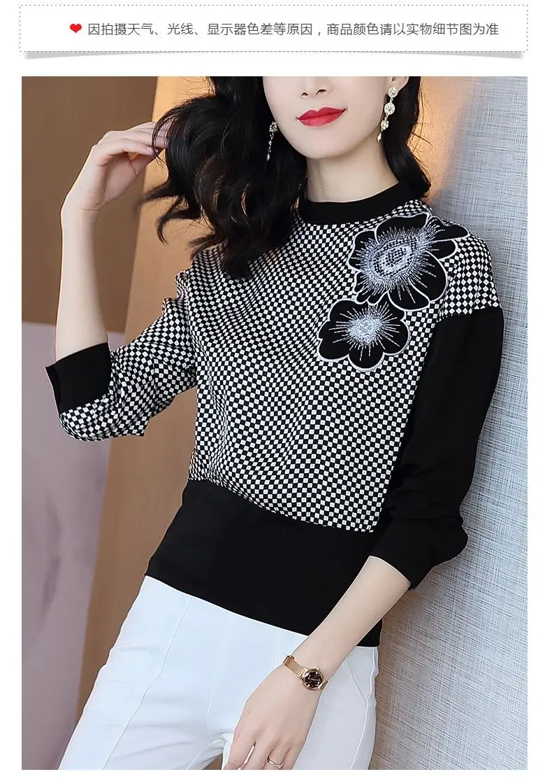 1 recensione per Moda versatile elegante primavera nuova stampa T-shirt donna O-Collo patchwork ricamo filo a vite allentato casual manica lunga Top