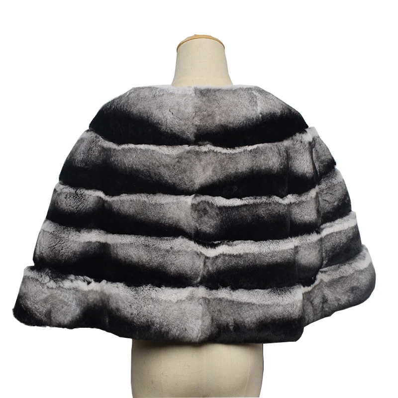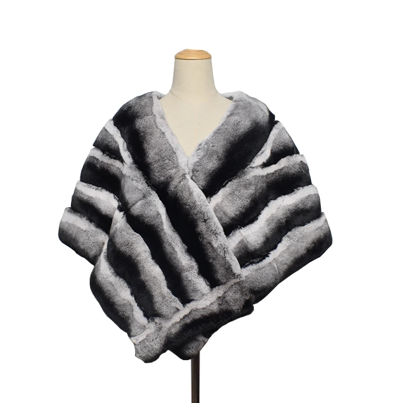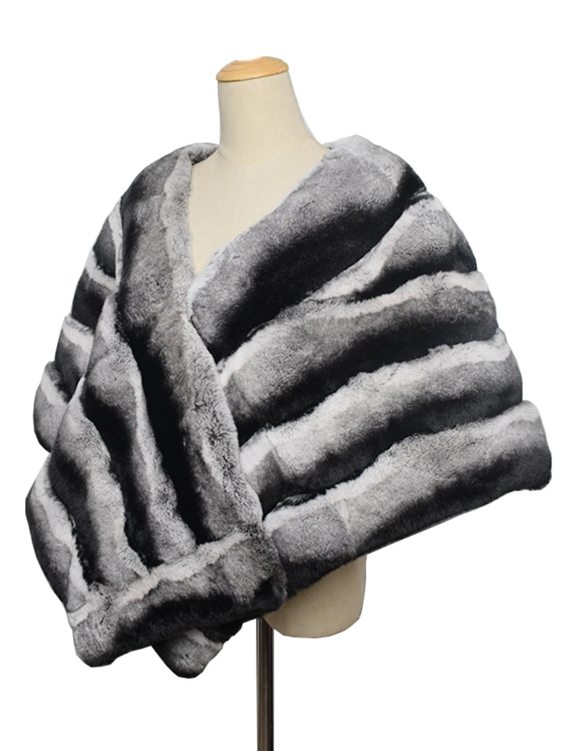 Ms.MinShu-sciarpa Color cincillà di lusso per donna, coprispalle Poncho, scialle in vera pelliccia di coniglio Rex 100% Premium, inverno