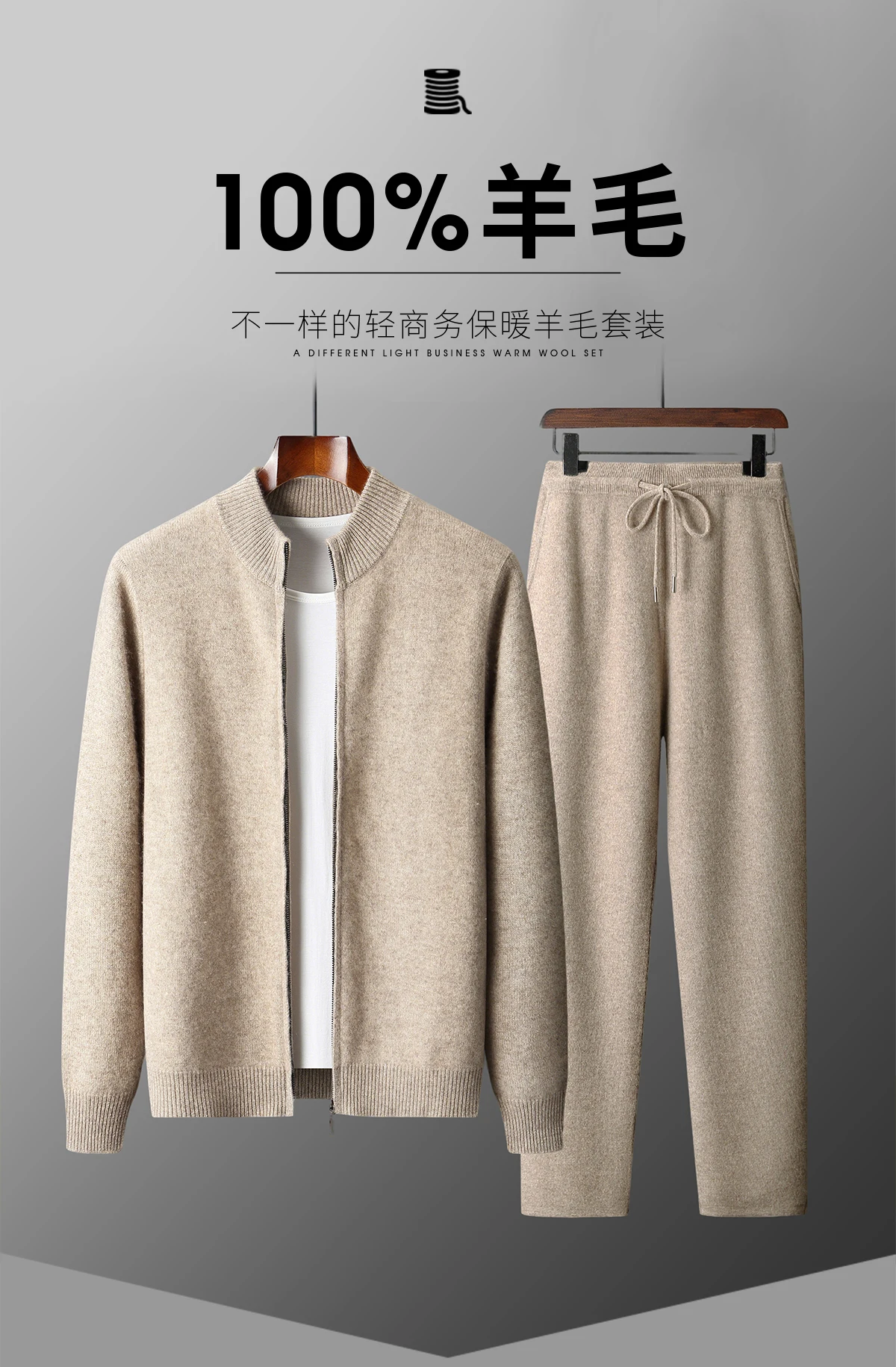 MVLYFLRT Abito da uomo in maglia di lana merino Mezza altezza Cardigan con cerniera Pantaloni lunghi Tuta Abbigliamento casual alla moda 24592431