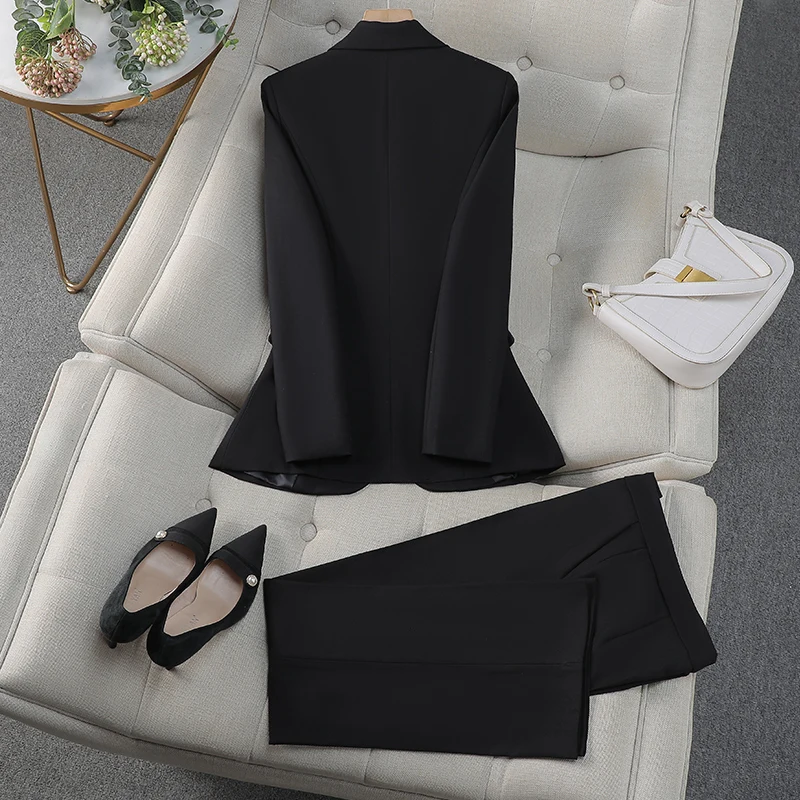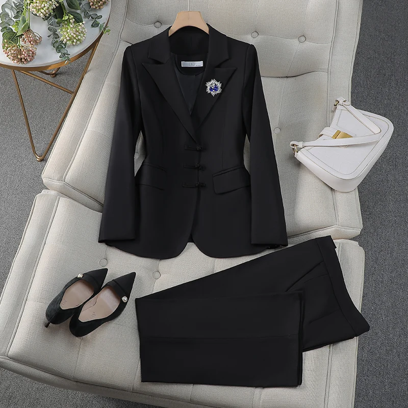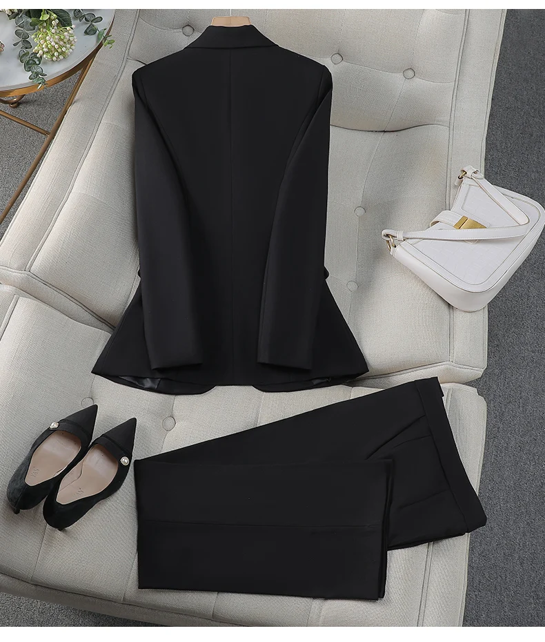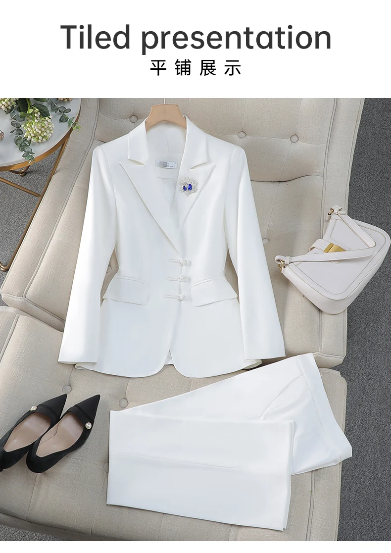 NAVIU Abiti da donna eleganti per il negozio di gioielli primaverili autunnali Pantaloni professionali con giacca da lavoro da donna per ufficio Nero Bianco