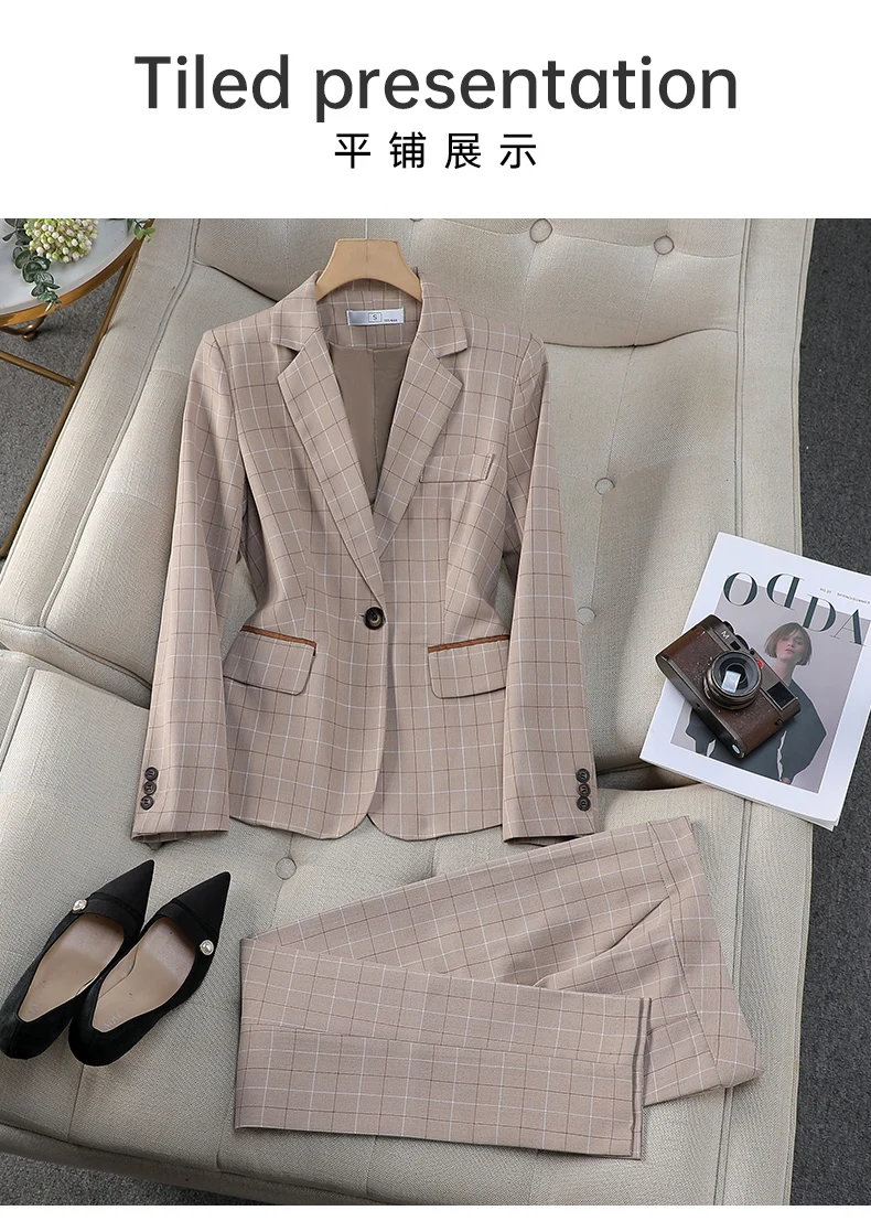 Recensisci per primo “NAVIU Khaki Blu Plaid Abiti Donna Primavera 2025 Nuovo Prfessional High End Casual Blazer e Pantaloni Set Office Lady Abbigliamento da lavoro”