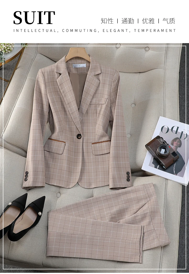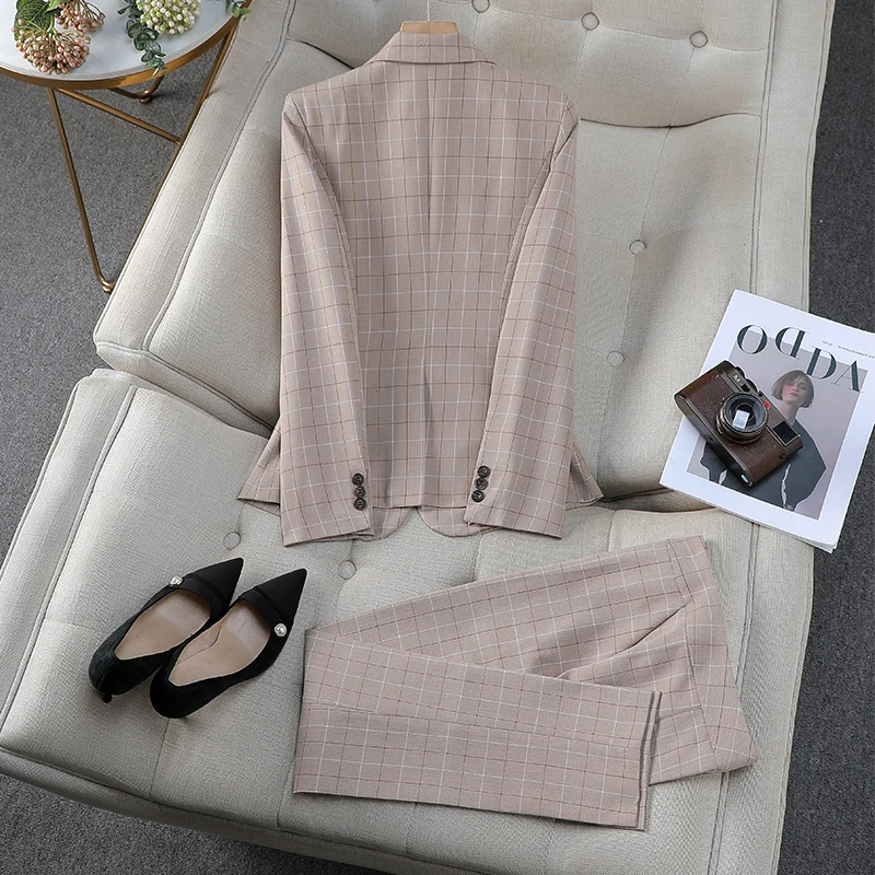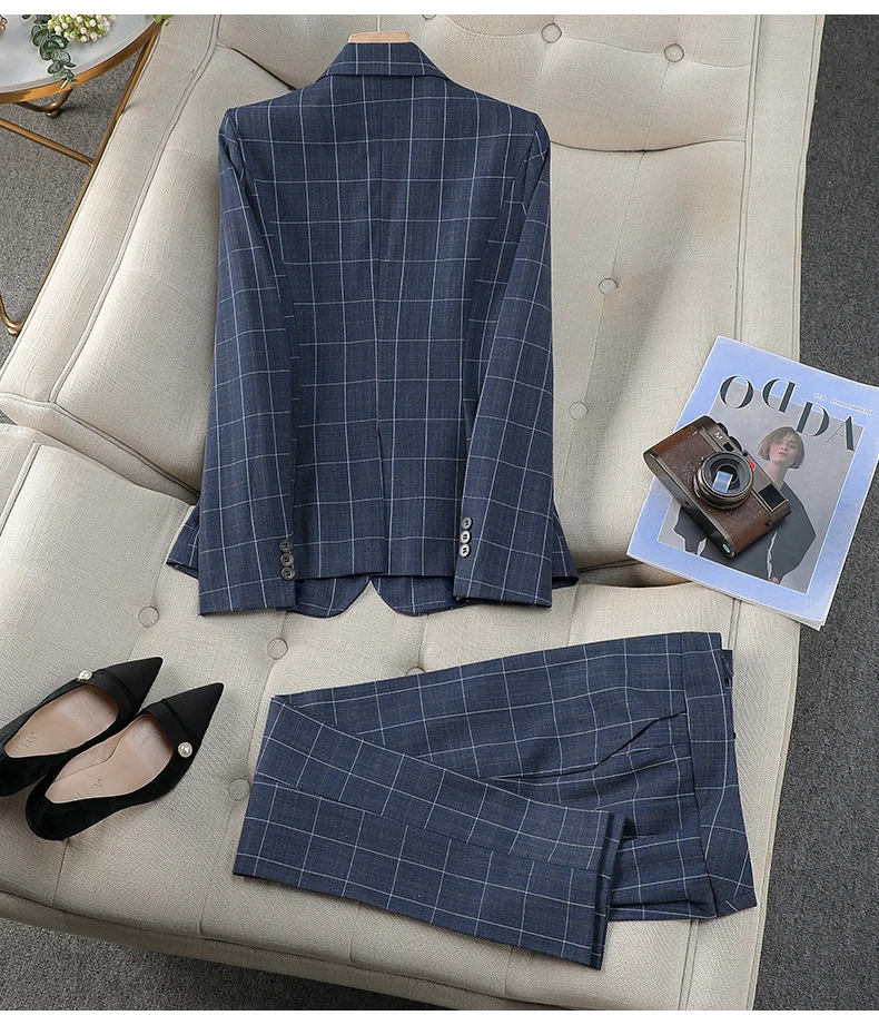 NAVIU Khaki Blu Plaid Abiti Donna Primavera 2025 Nuovo Prfessional High End Casual Blazer e Pantaloni Set Office Lady Abbigliamento da lavoro