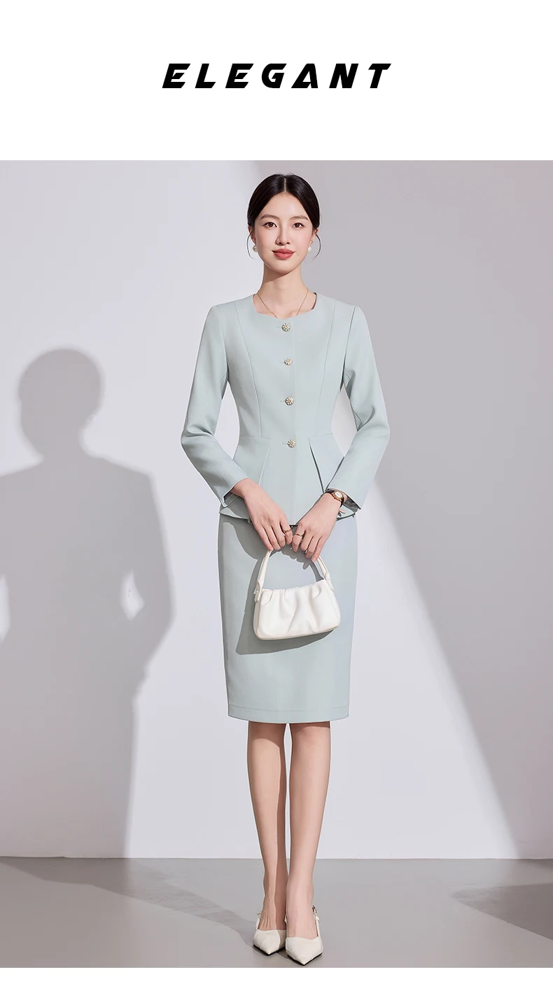 NAVIU Set da 2 pezzi Blazer e gonna corta Nuovo abito da donna elegante autunno monopetto slim da ufficio formale da lavoro