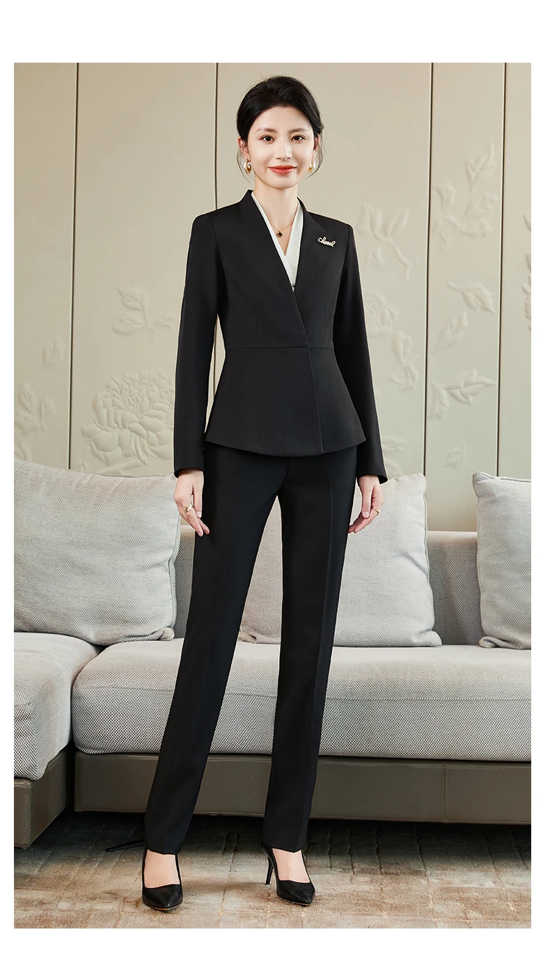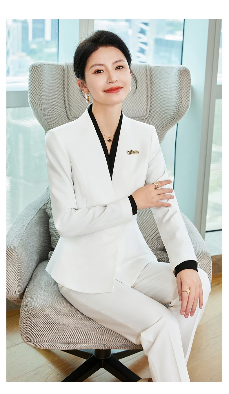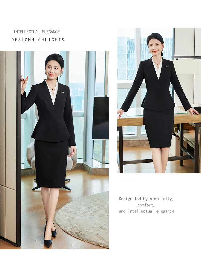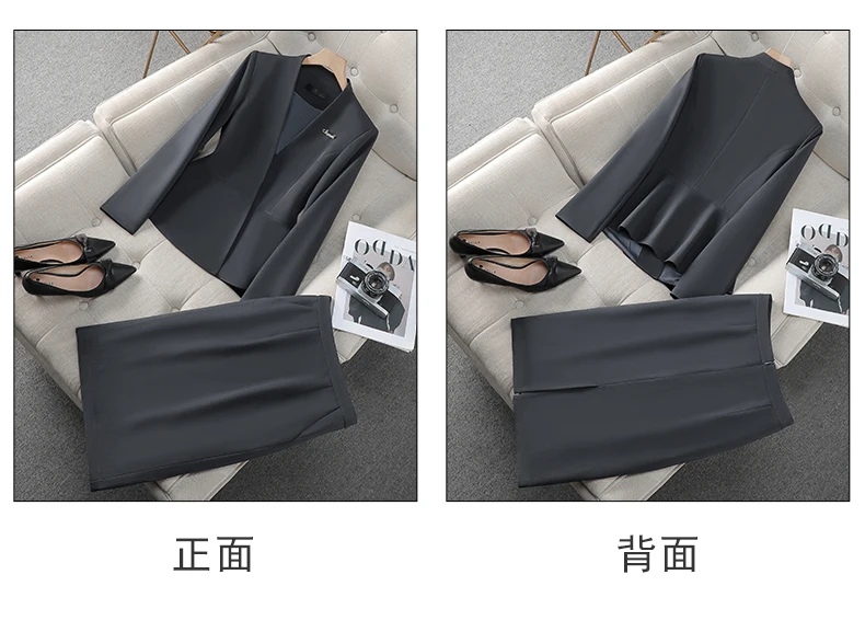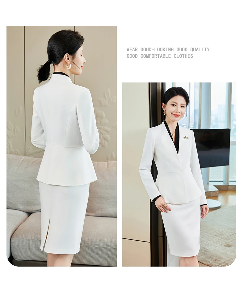 2 recensioni per NAVIU Slim Women Suits Fashion 2024 New manica lunga con scollo a V Blazer e gonna a petto nascosto Office Ladies Solid Work Wear Sets