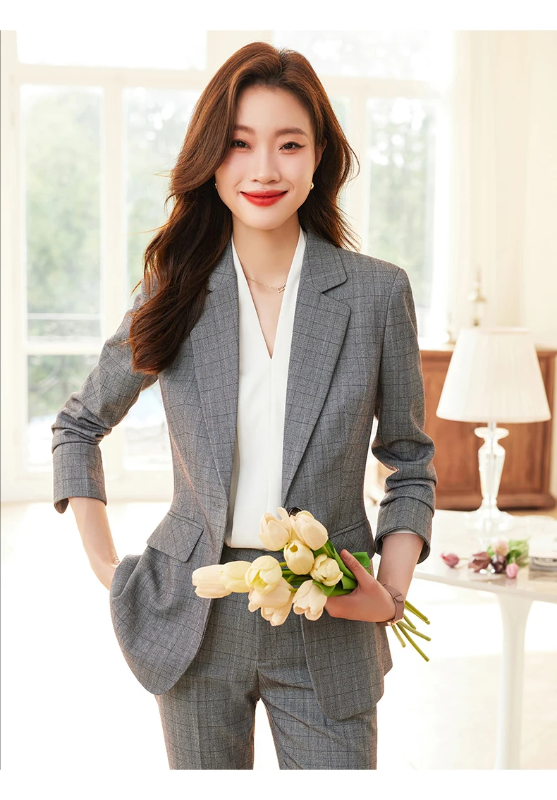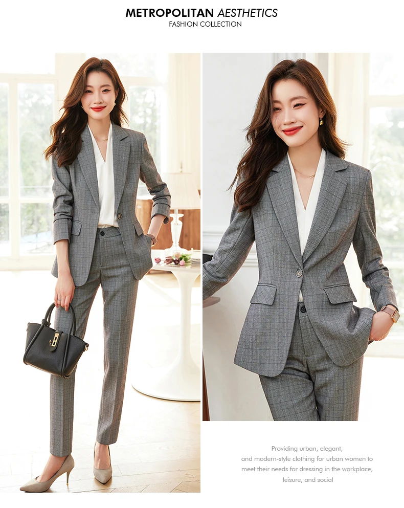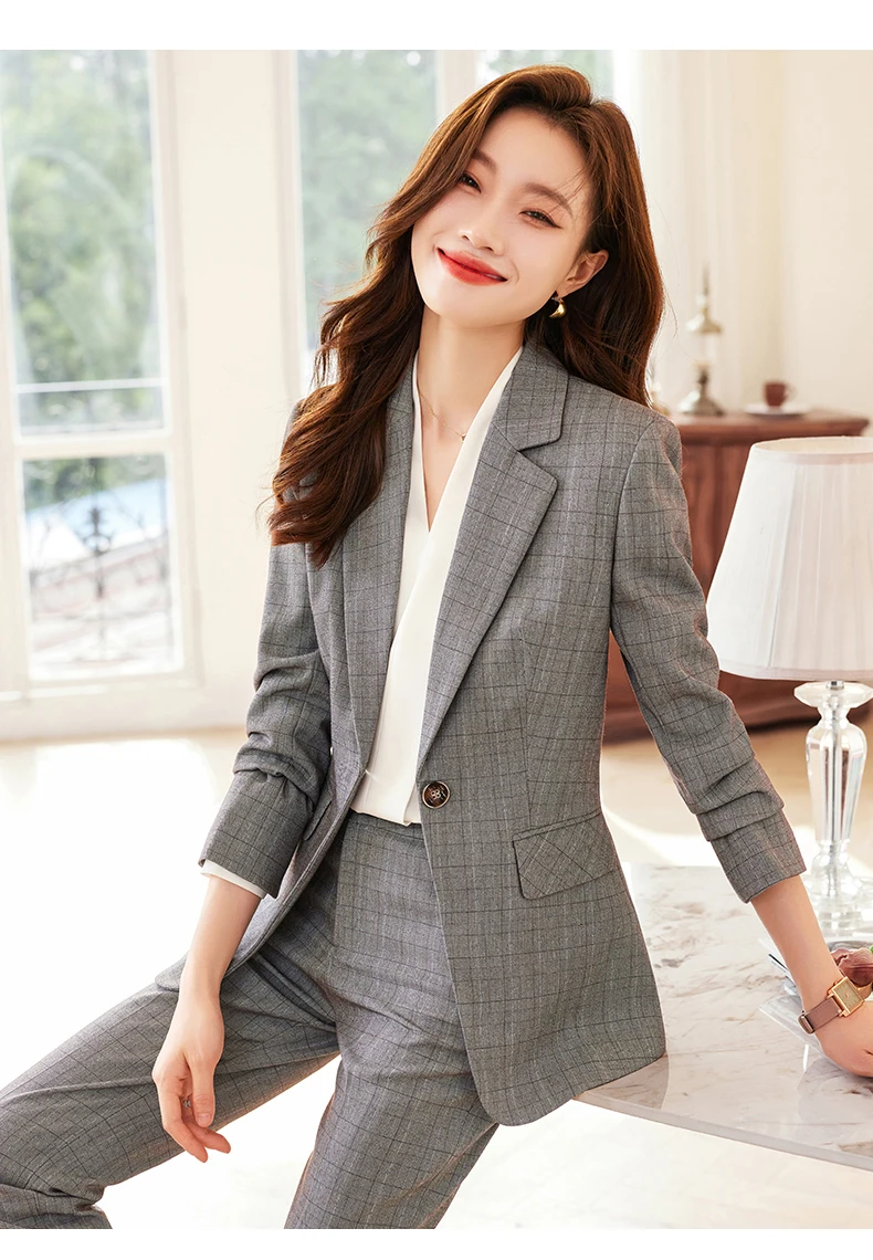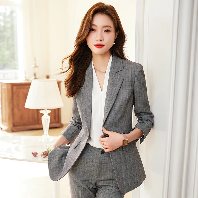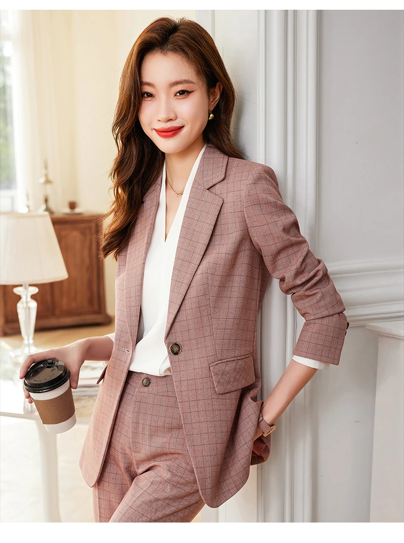 NAVIU Tessuto di alta qualità Formale Professionale Lady Office Abbigliamento da lavoro Primavera OL Stili Pantalone Elegante blazer scozzese e pantaloni