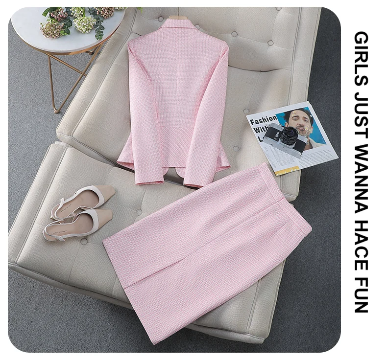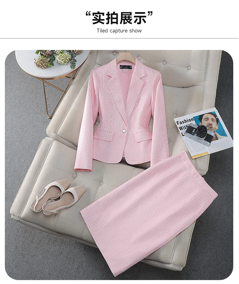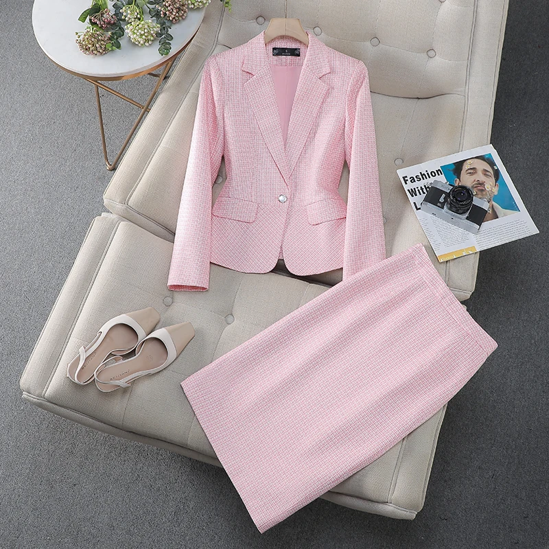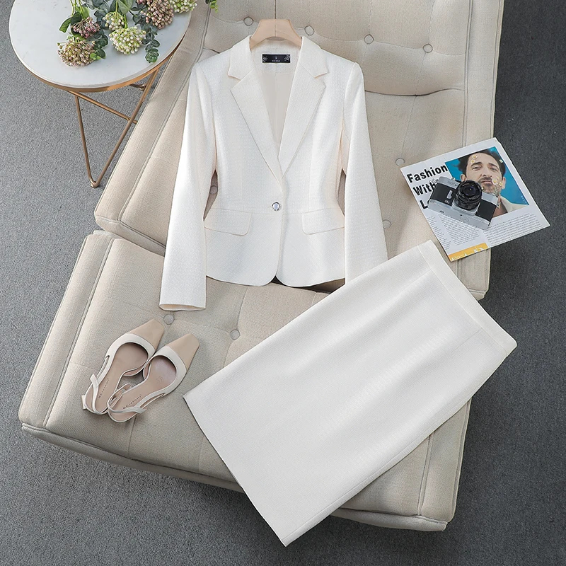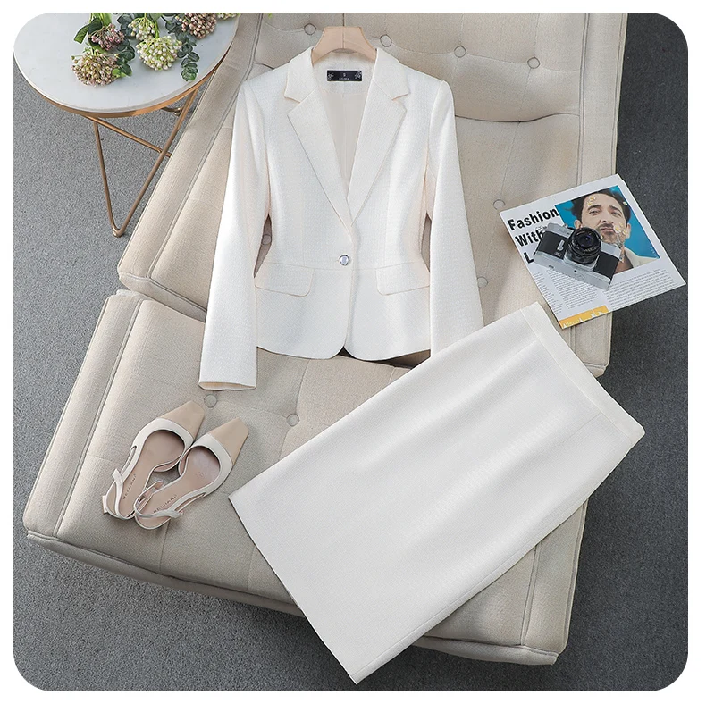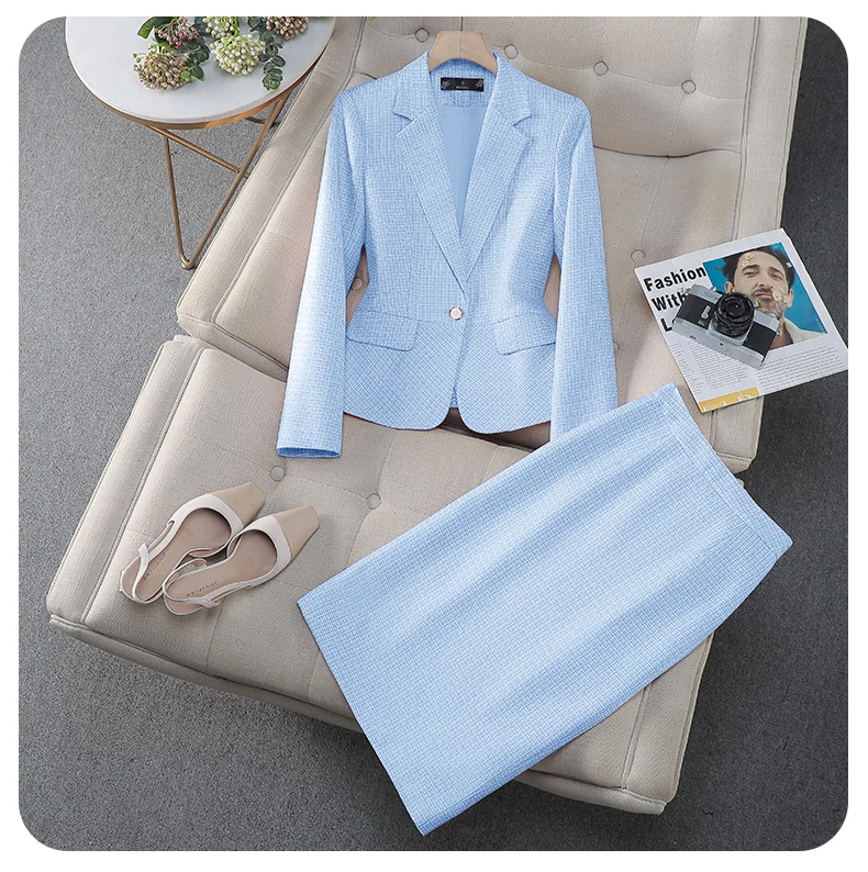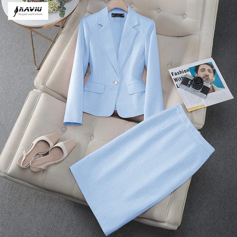 NAVIU Tessuto di alta qualità Stili eleganti Abiti da donna Temperamento blu Giacca a maniche lunghe e gonna Abbigliamento da lavoro da donna per ufficio