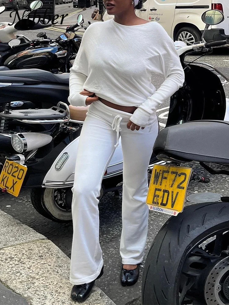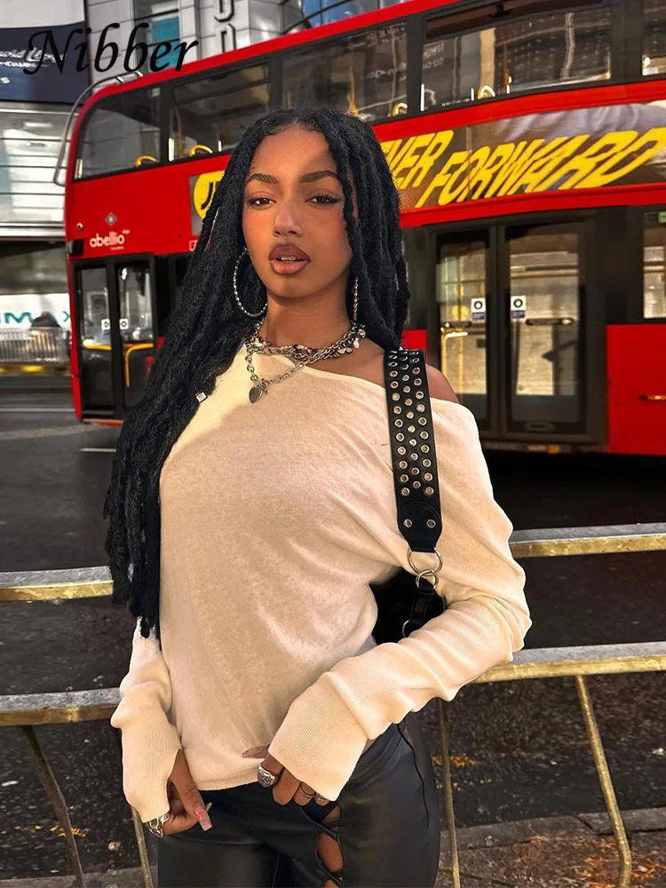 Nibber Casual Semplice Moda T-Shirt Donna Autunno Tendenza Skinny Stretch Colletto obliquo Manica intera Solid O-Collo Pullover Street Tees