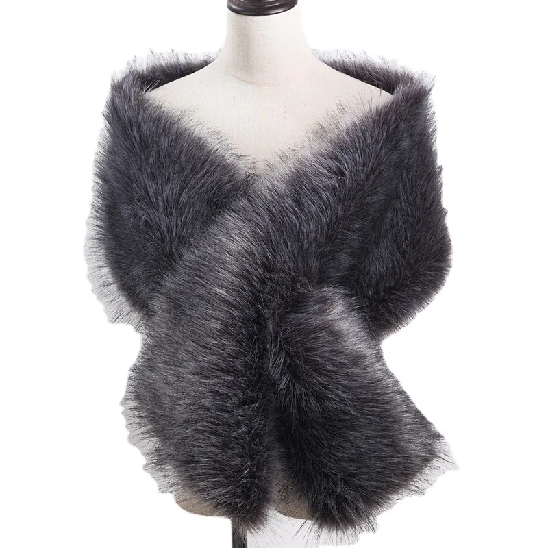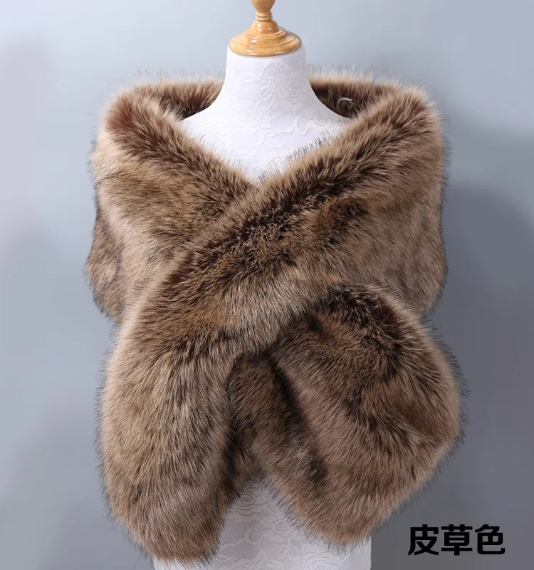 Nuove donne alla moda di lusso caldo scialle di pelliccia di volpe sintetica signore di inverno sciarpa di peluche avvolge mantello cappotto da sposa lungo mantello sciarpe Wh15