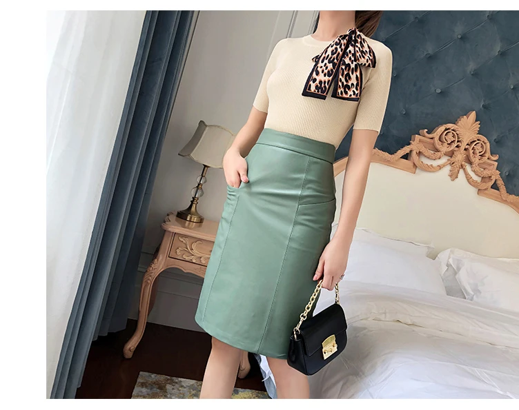 4 recensioni per NUOVE Donne di Inverno del Cuoio Genuino Midi Lungo del Pannello Esterno OL Elegante Semplice Sottile Saia Mujer Verde/Nero Sexy Wrap Jupe street Wear Gonne