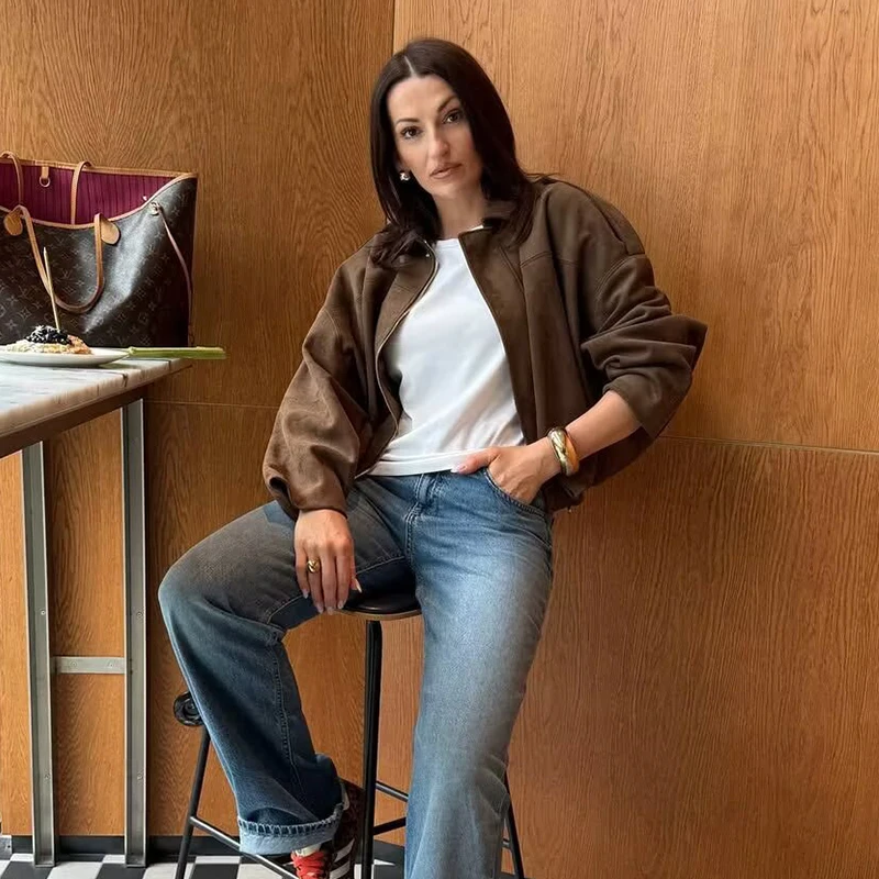 Nuove giacche da donna 2025 Moda autunnale Maniche a pipistrello larghe Giacche da donna eleganti Chic Street Youth Autunno Maniche lunghe Cappotti