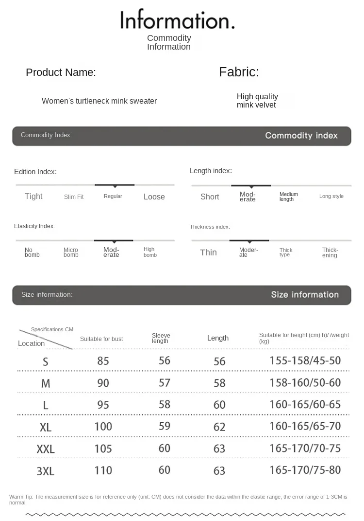 9 recensioni per Nuovo abbigliamento donna per autunno/inverno 2024 100% visone peluche dolcevita Pullover maglione donna Cashmere maglione Dbr-018