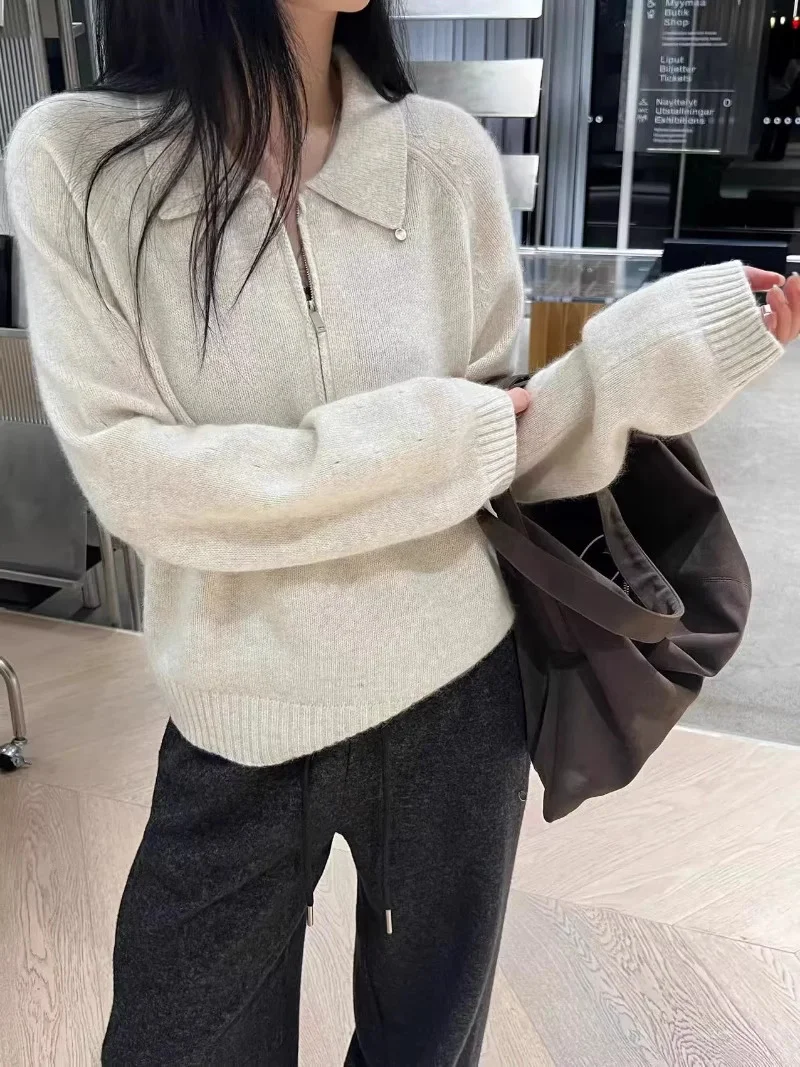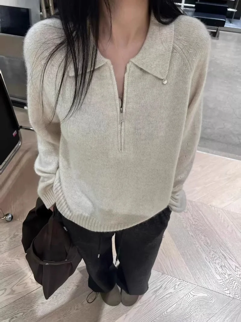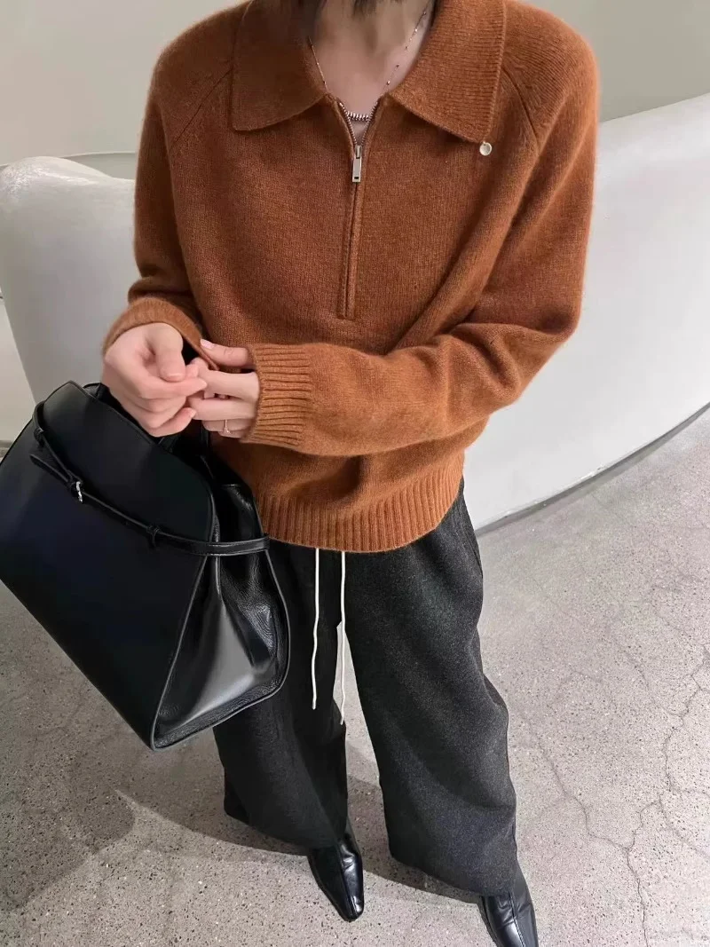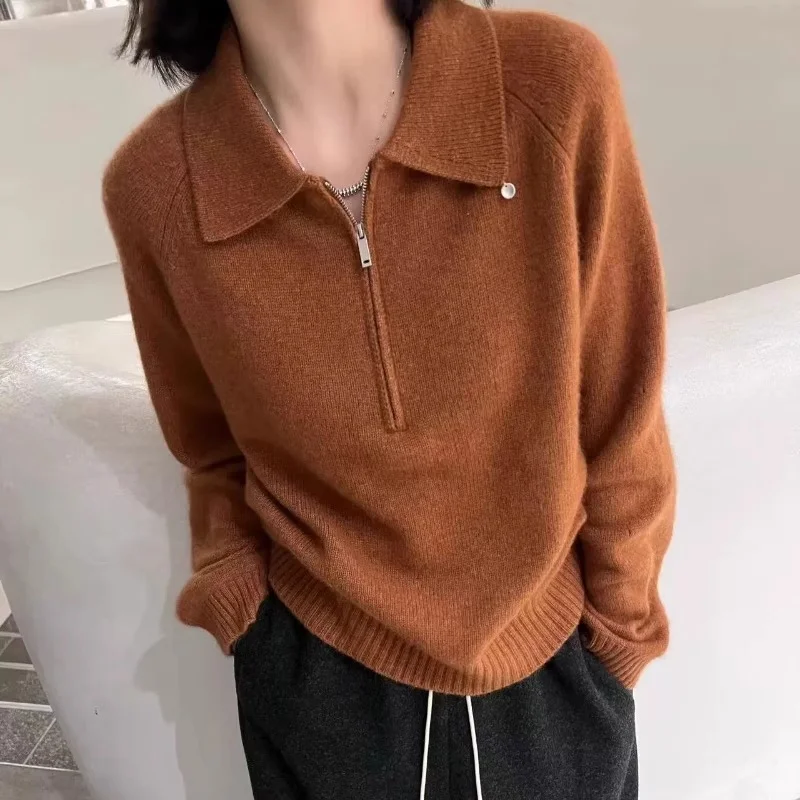 Recensisci per primo “Nuovo maglione da donna 100% cashmere lavorato a maglia pullover da donna colletto POLO maglione di cashmere tinta unita allentato top di vendita caldo da donna”