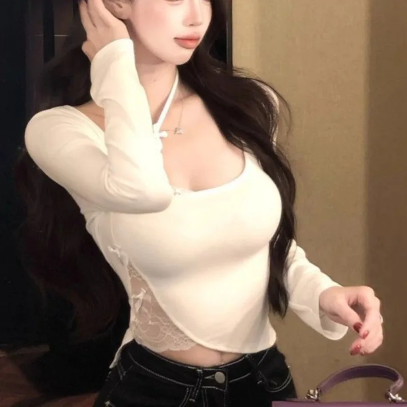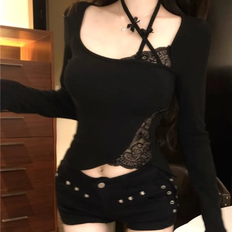 OCEANLOVE T-shirt sexy viola per donna Patchwork di pizzo Y2k Vestiti Ropa De Mujer Moda coreana Primavera Estate T-shirt corte