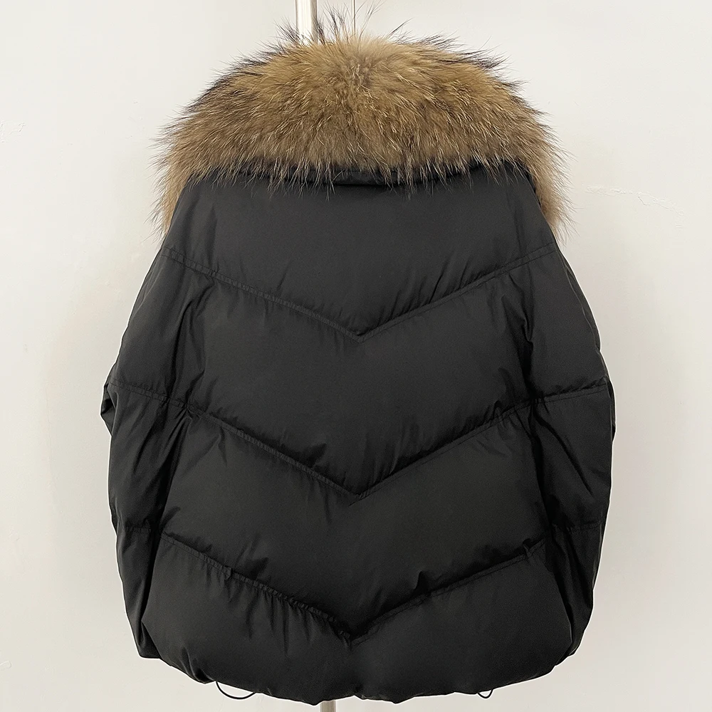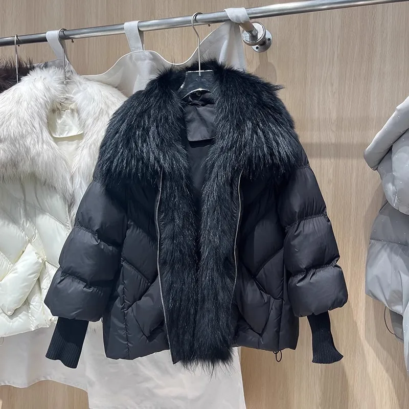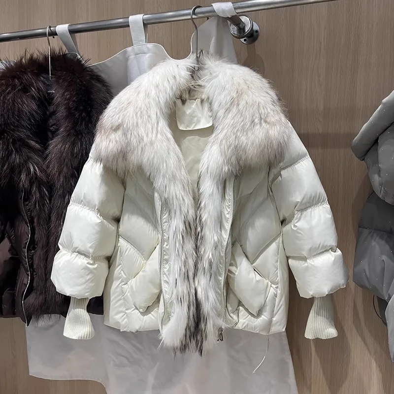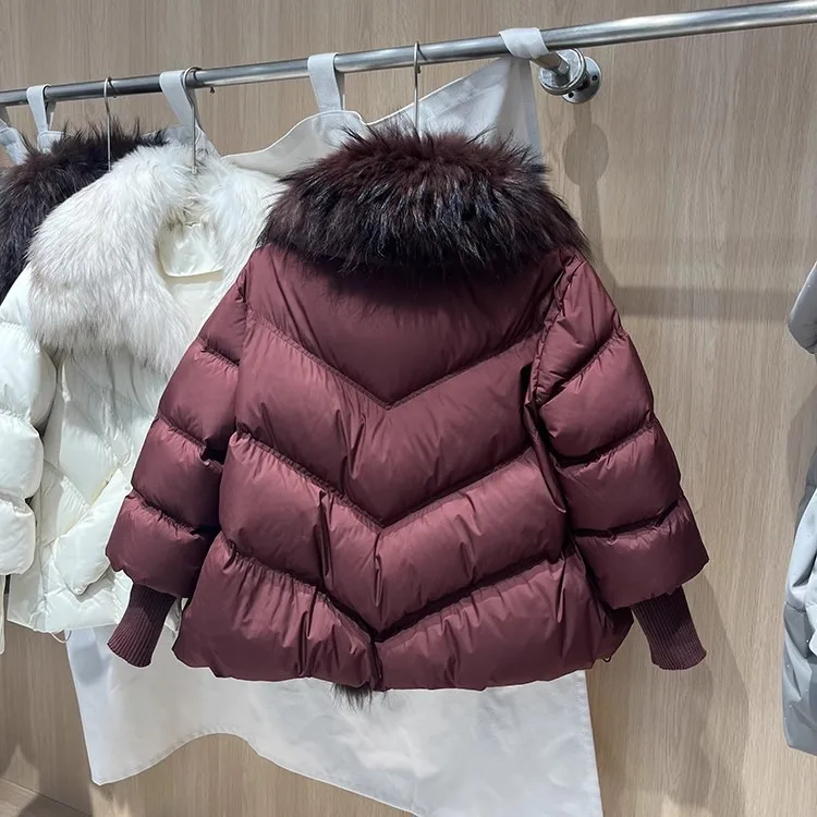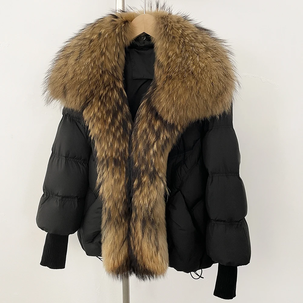 OFTBUY 2025 Nuovo Inverno Grande Vera Pelliccia di Procione Piumino da Donna di Grandi Dimensioni Piuma Imbottiture Parka Manica in Maglia Piumino d’anatra Bianca