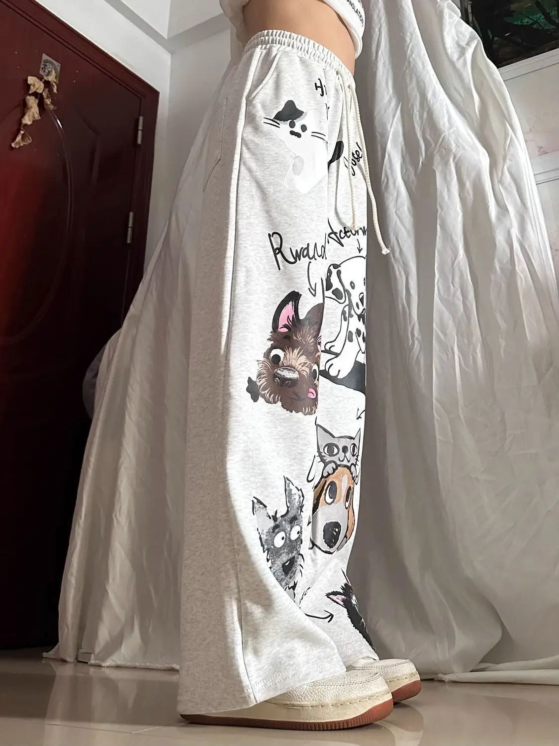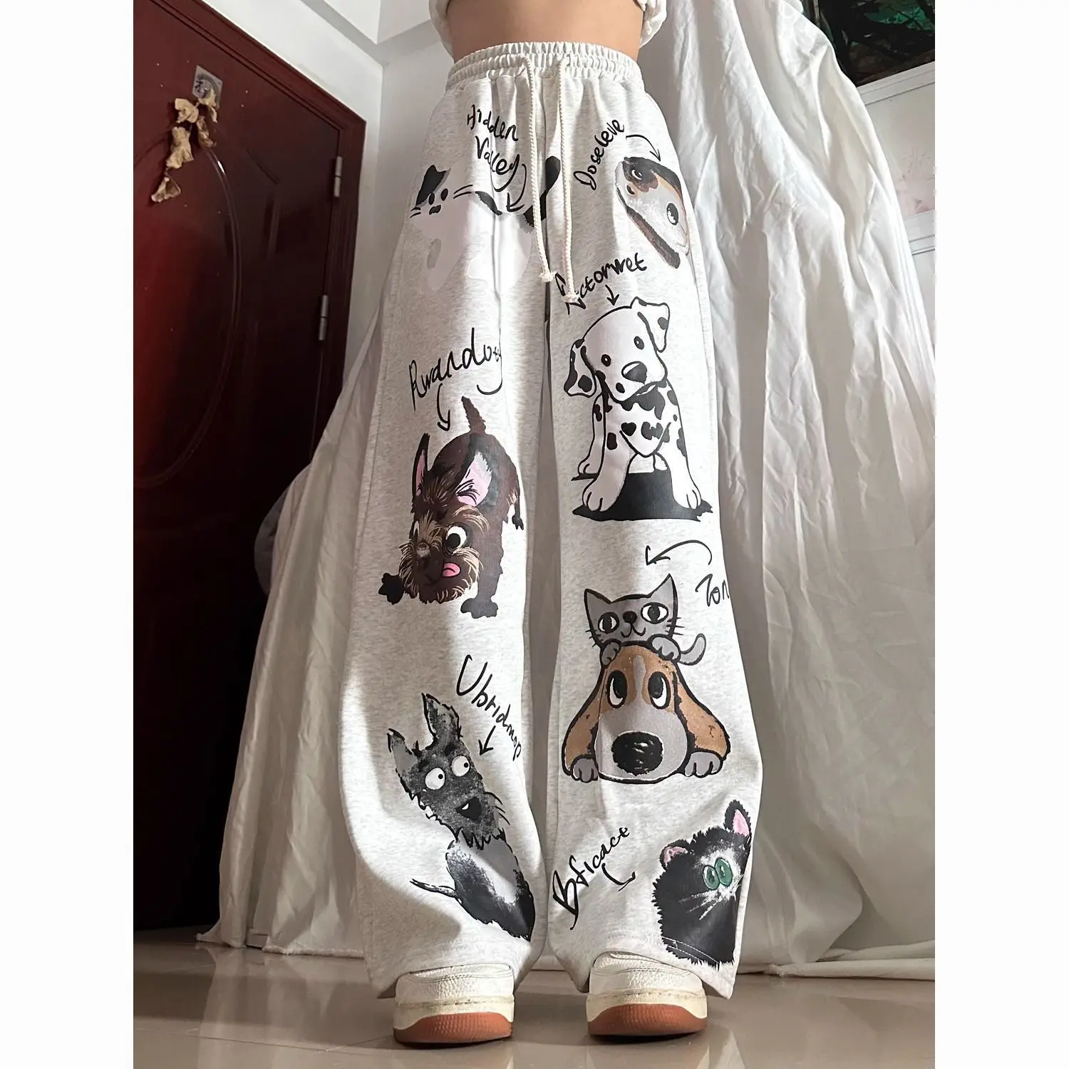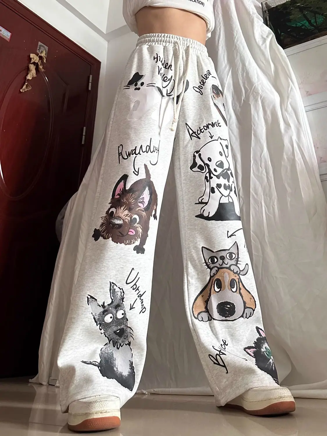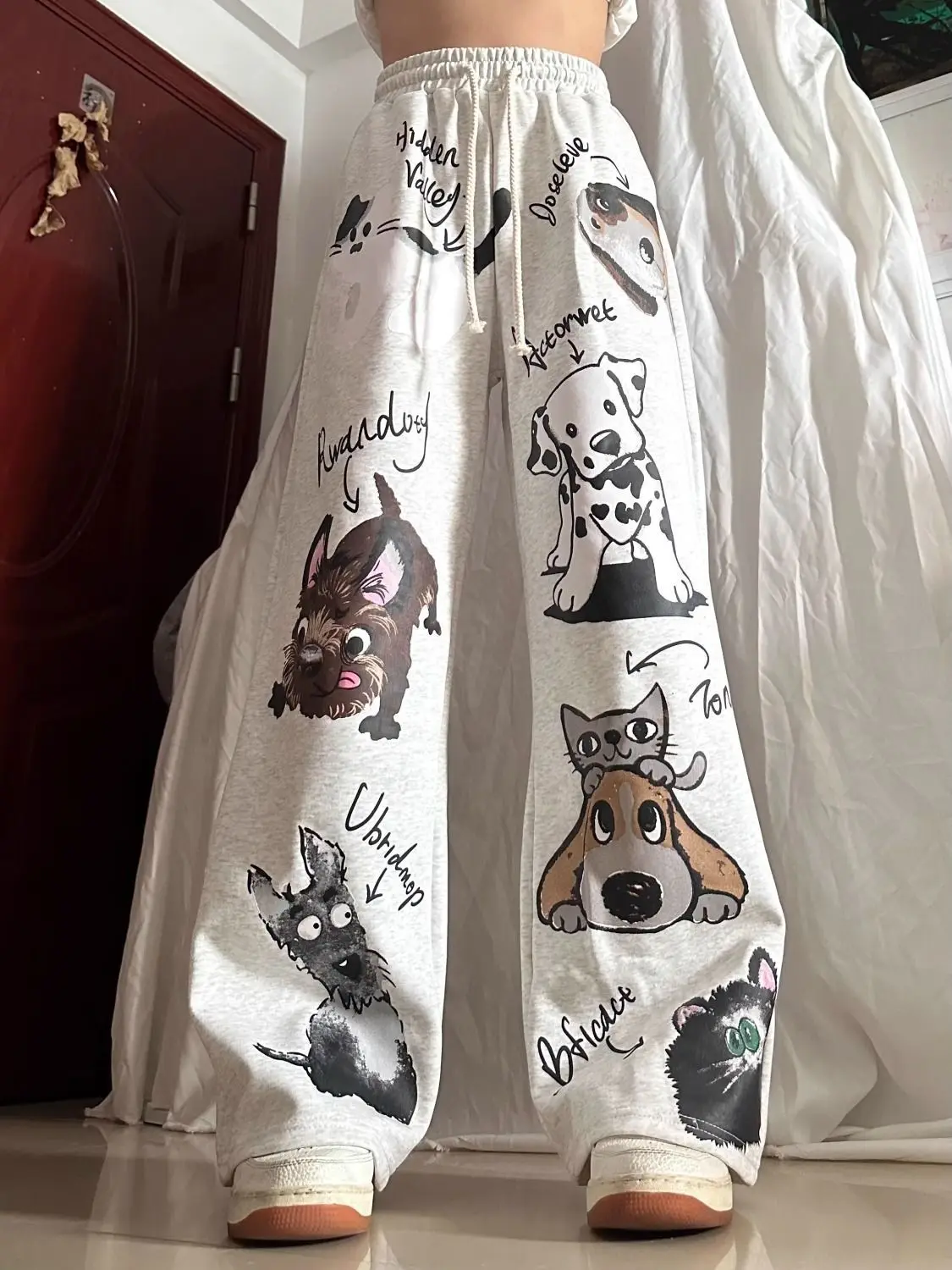 Onalippa Y2K Millennium 2025 Pantaloni casual sportivi con stampa di cani creativi Donna Anime Abby Pantaloni larghi carini