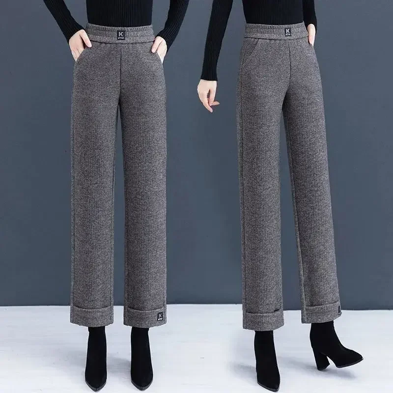 Pantaloni a gamba larga a vita alta da donna autunno inverno nuovi pantaloni di lana drappeggiati dimagranti larghi pantaloni lunghi moda femminile
