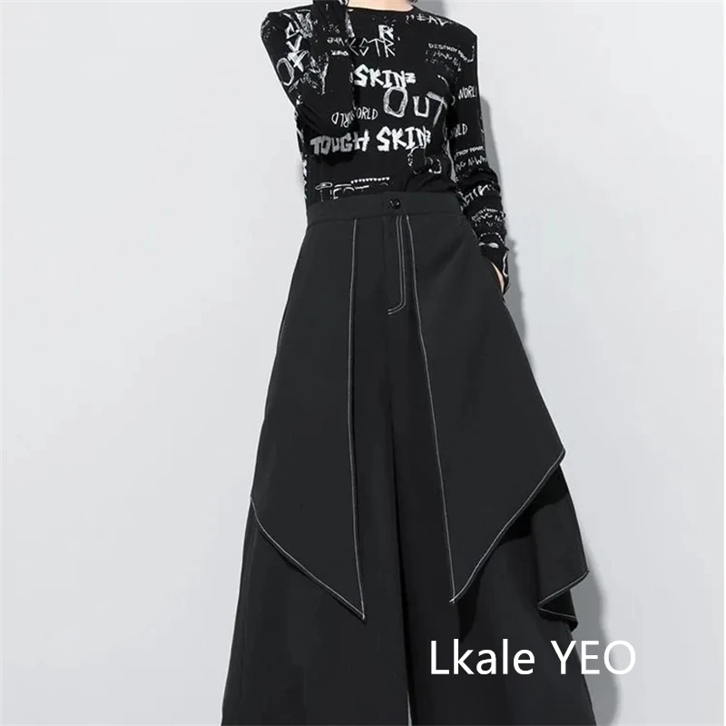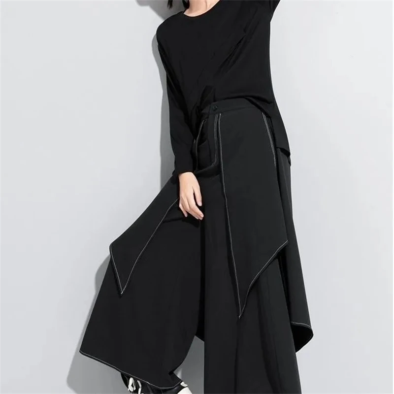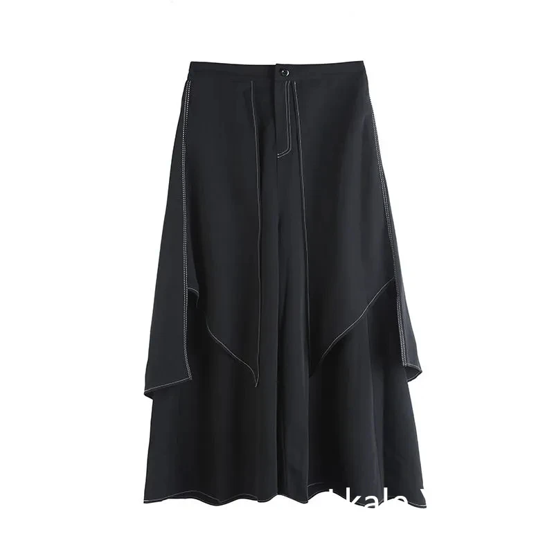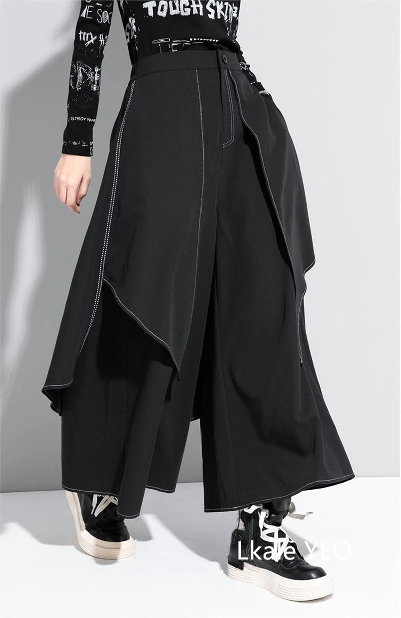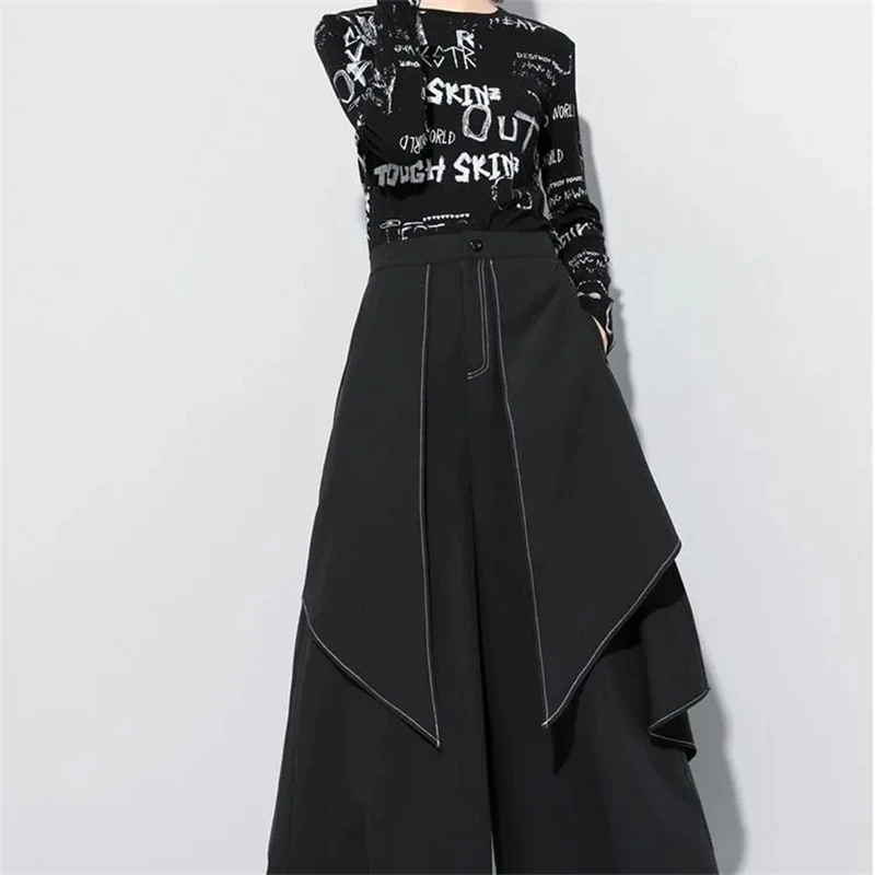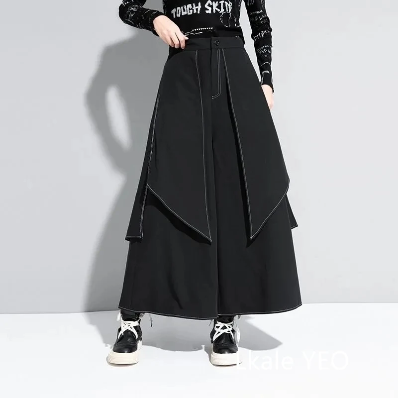 Pantaloni a gamba larga da donna 2025 Primavera Estate Casual Falso in due pezzi Design Pantaloni da donna Allentati Streetwear Moda Femme Pantaloni