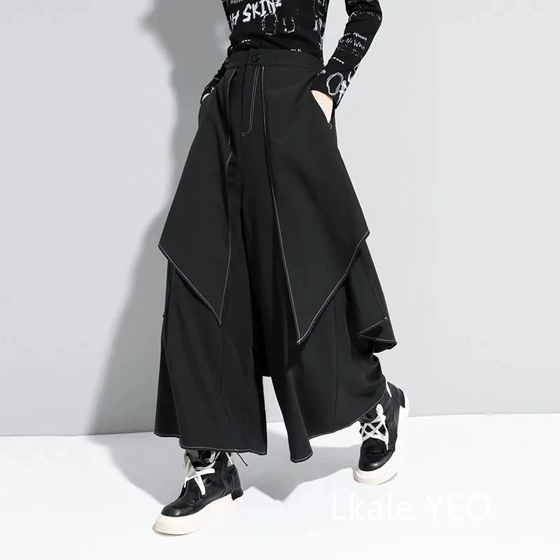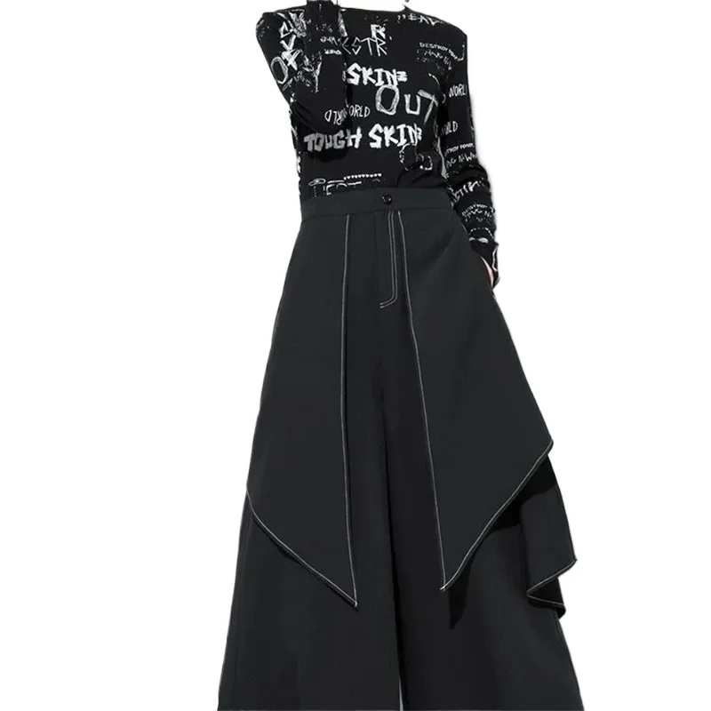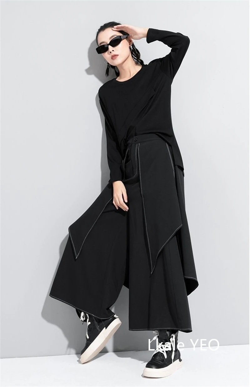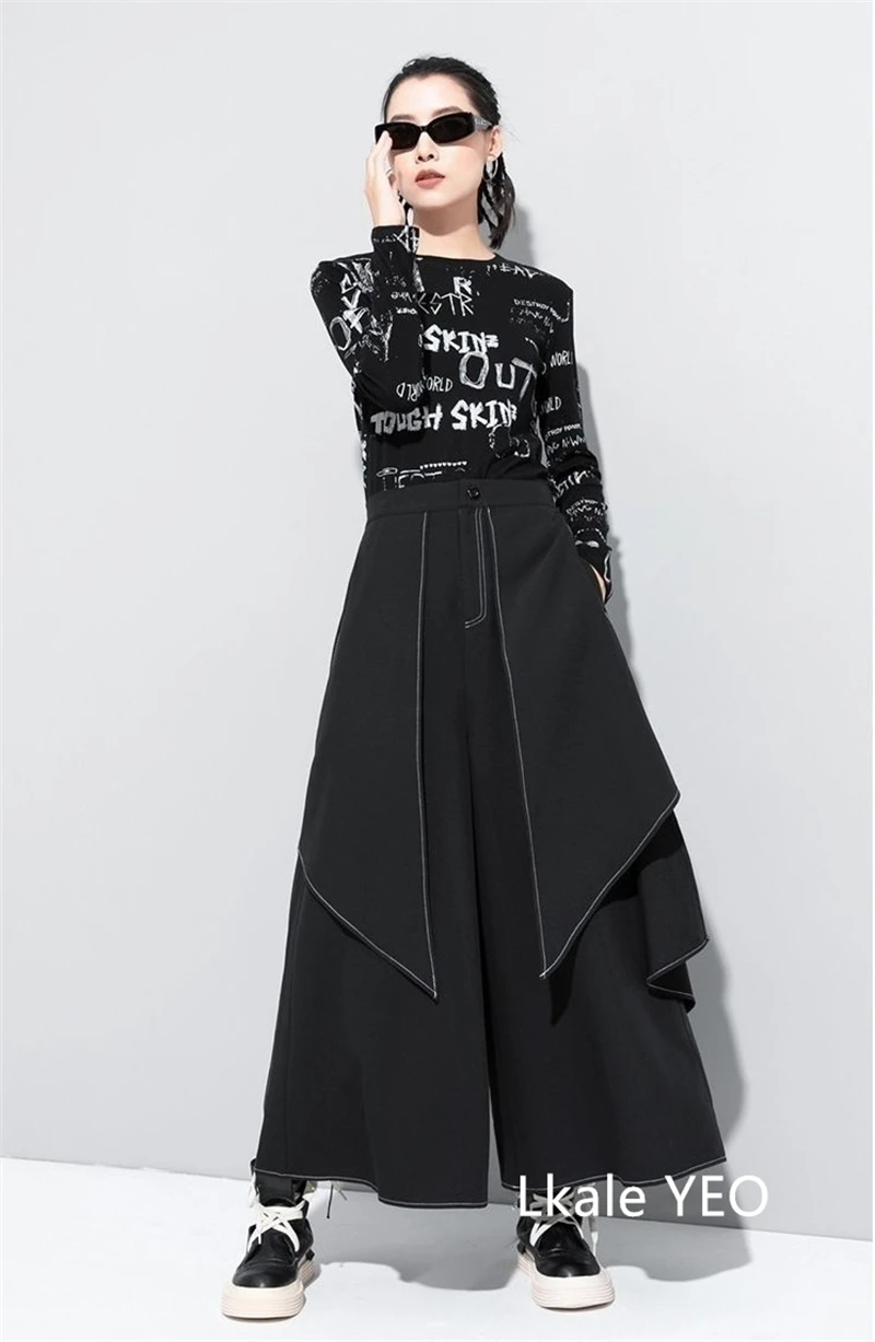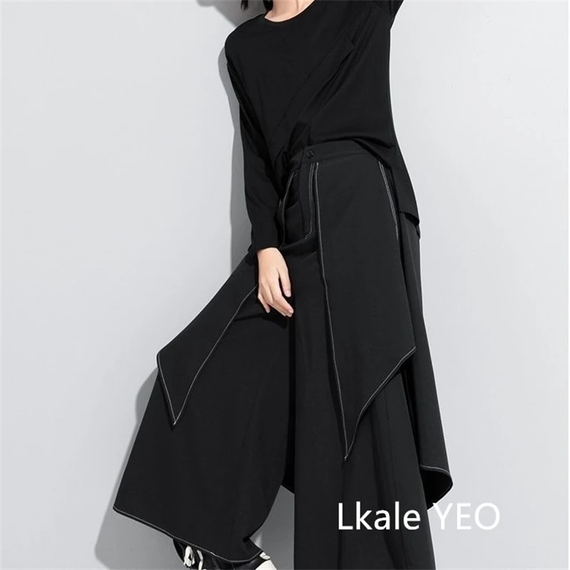 Pantaloni a gamba larga da donna 2025 Primavera Estate Casual Falso in due pezzi Design Pantaloni da donna Allentati Streetwear Moda Femme Pantaloni