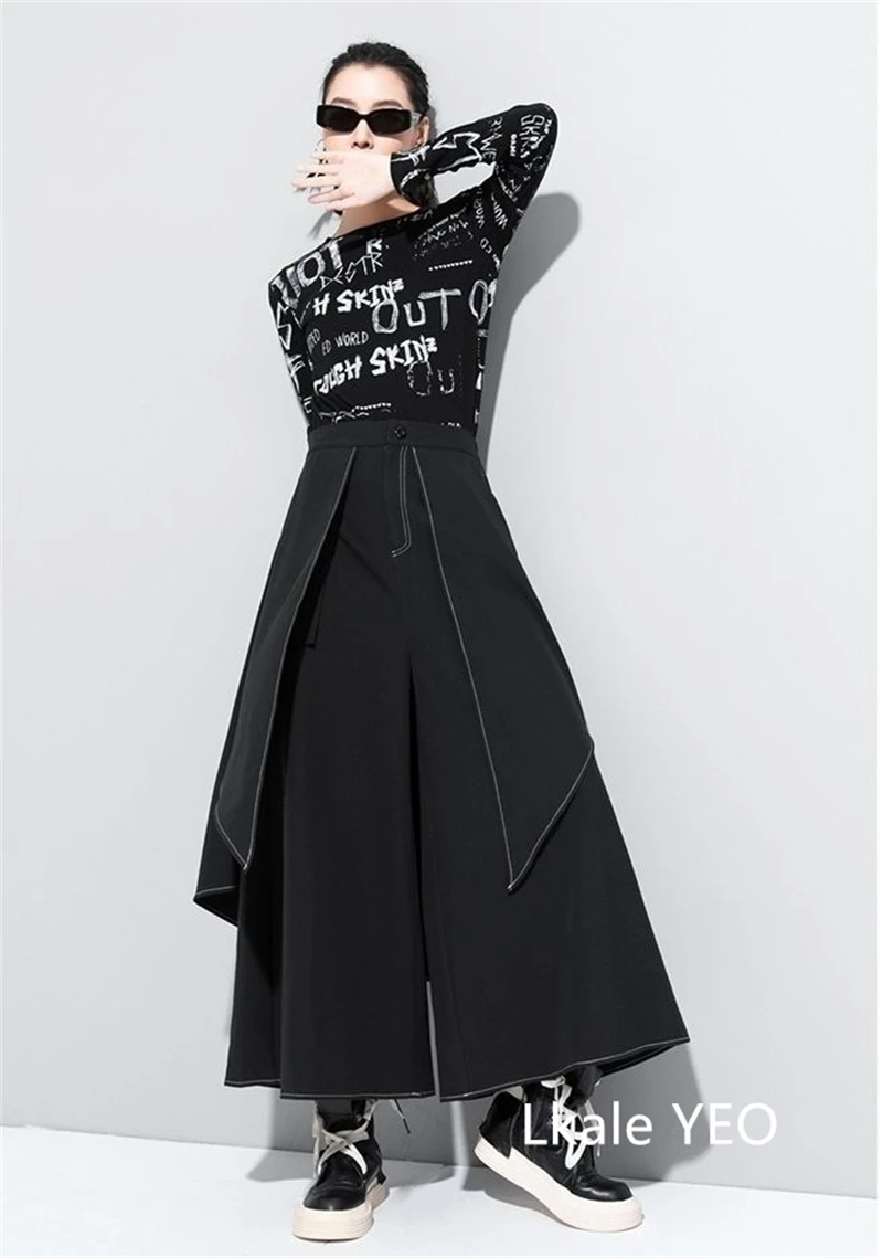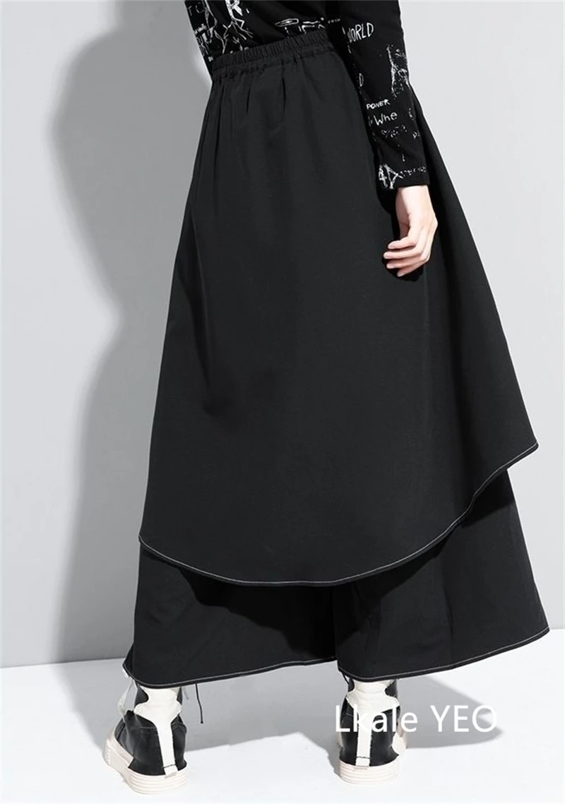 1 recensione per Pantaloni a gamba larga da donna 2025 Primavera Estate Casual Falso in due pezzi Design Pantaloni da donna Allentati Streetwear Moda Femme Pantaloni