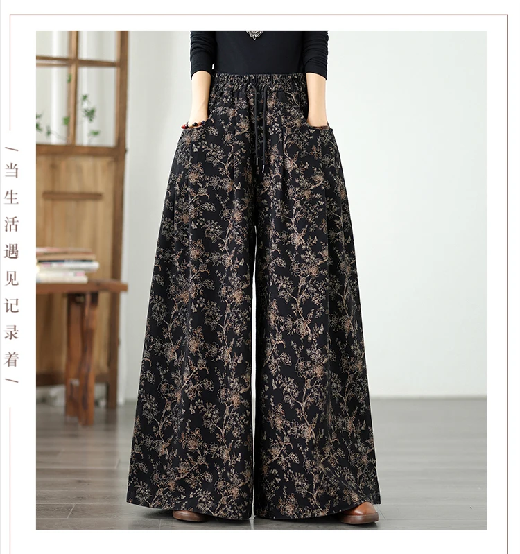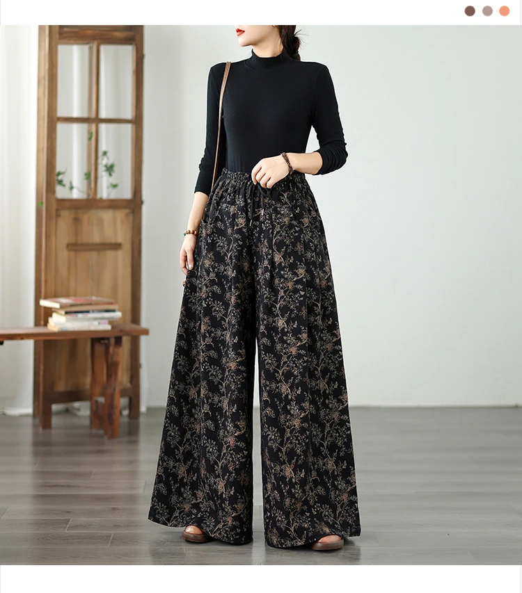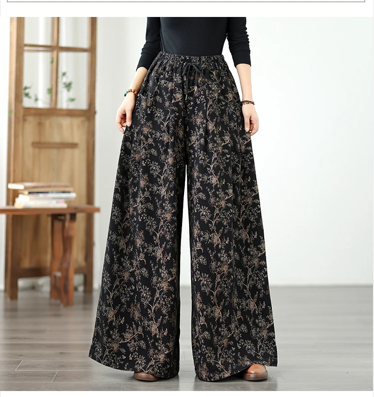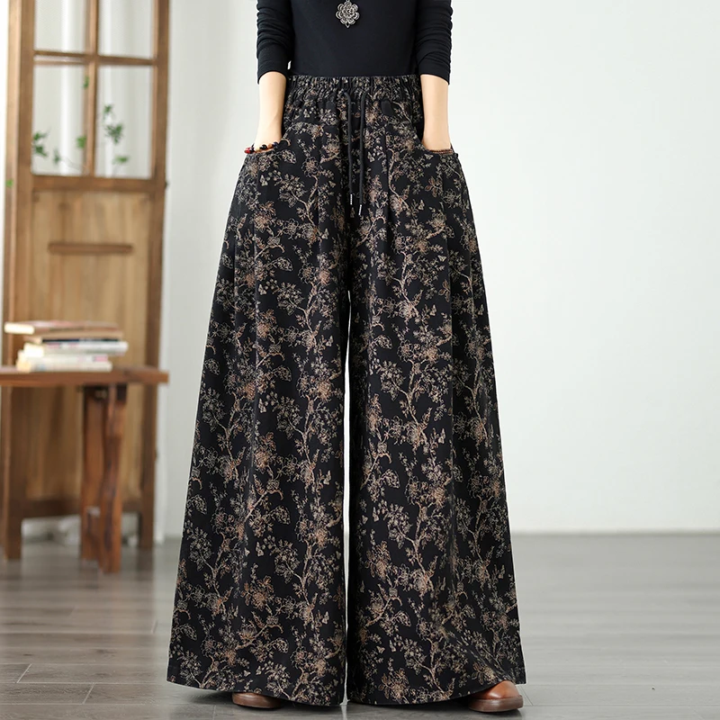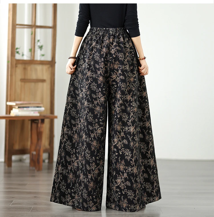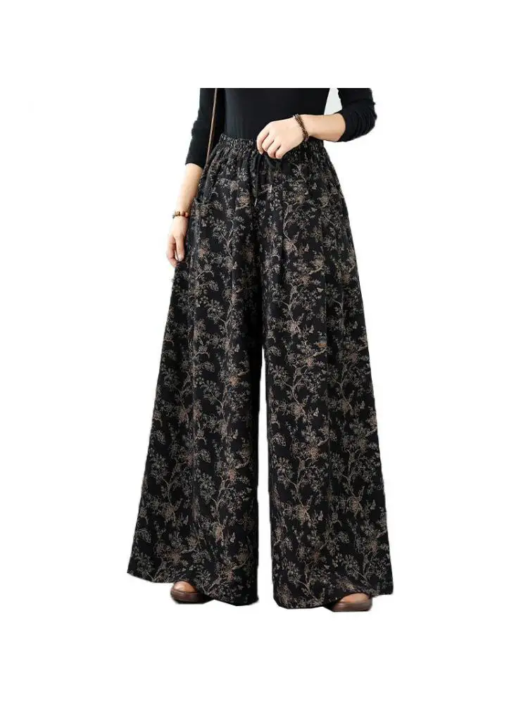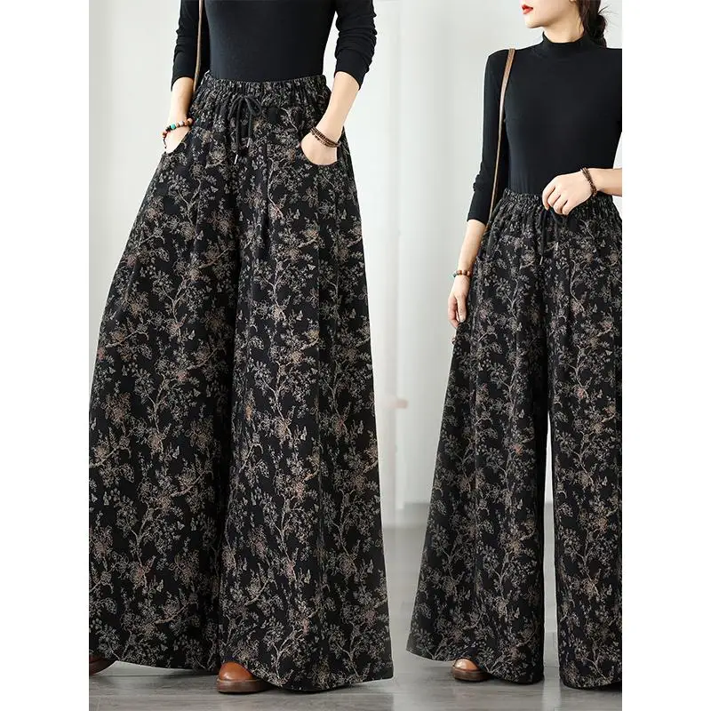 Pantaloni a gamba larga in denim per donna 2025 Autunno nuovo stile stampato elastico in vita pantaloni dritti in denim casual oversize larghi