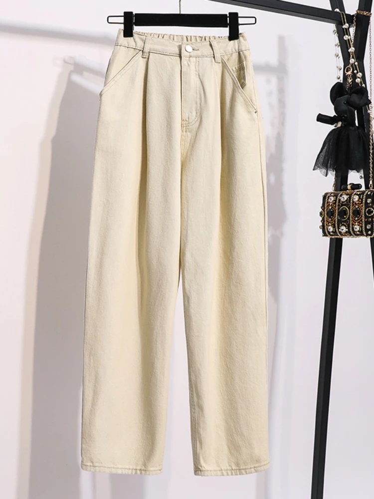 Pantaloni a gamba larga in puro cotone vintage autunno inverno 2025 Pantaloni da donna taglie forti Pantaloni a vita alta casual dritti a figura intera