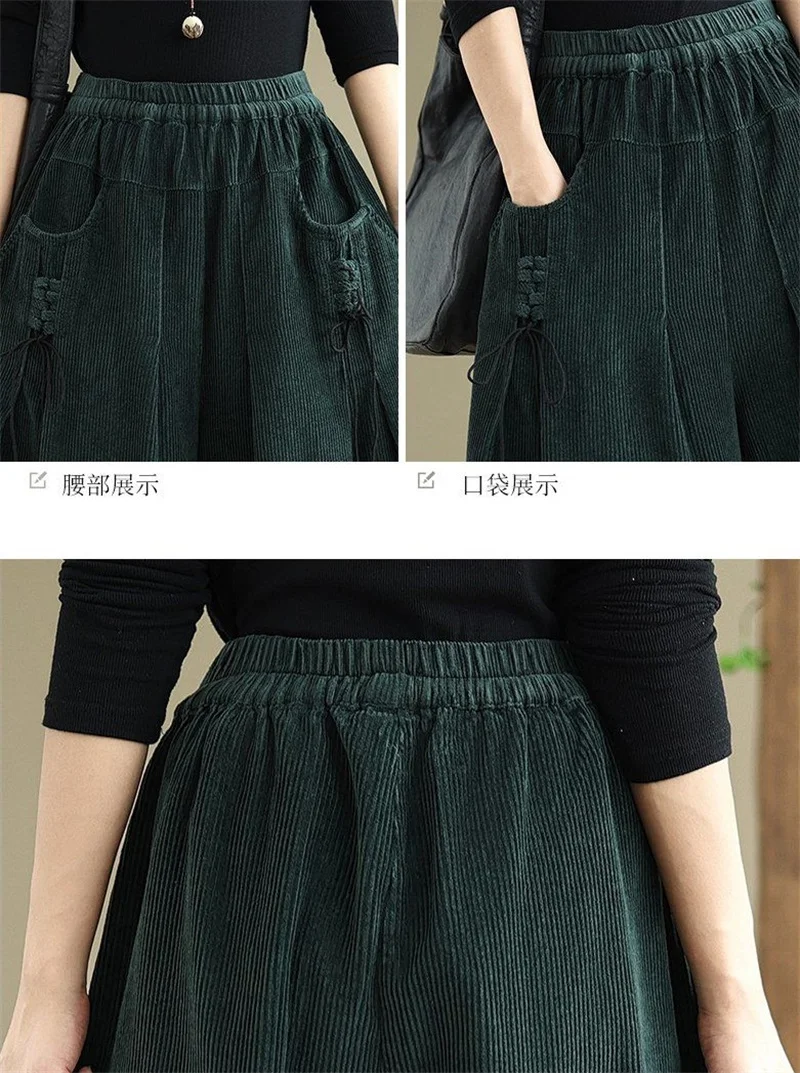 1 recensione per Pantaloni a gamba larga in velluto a coste Primavera Autunno da donna Pantaloni larghi taglie forti Culottes Tasca alla moda Gonna pantalone in vita elastica Donna