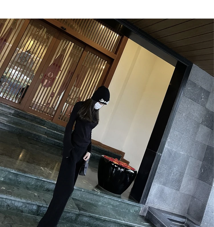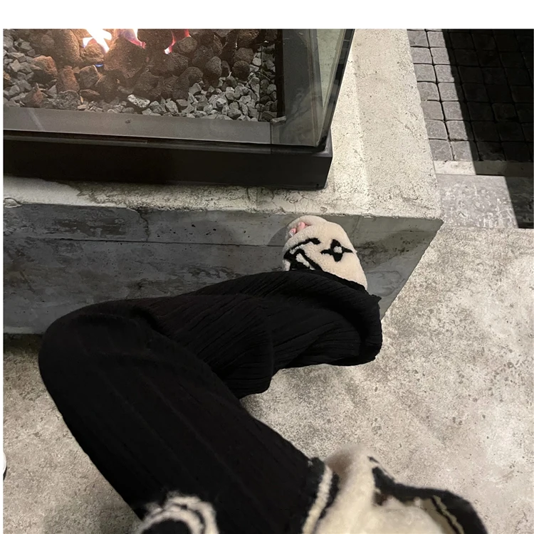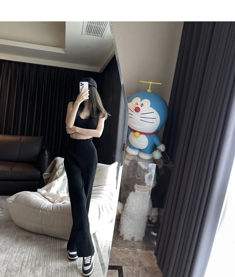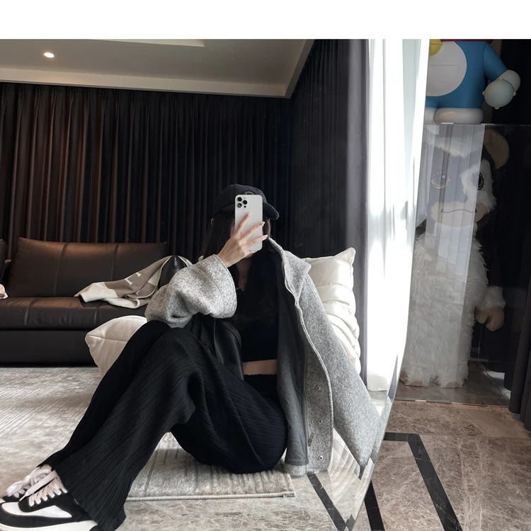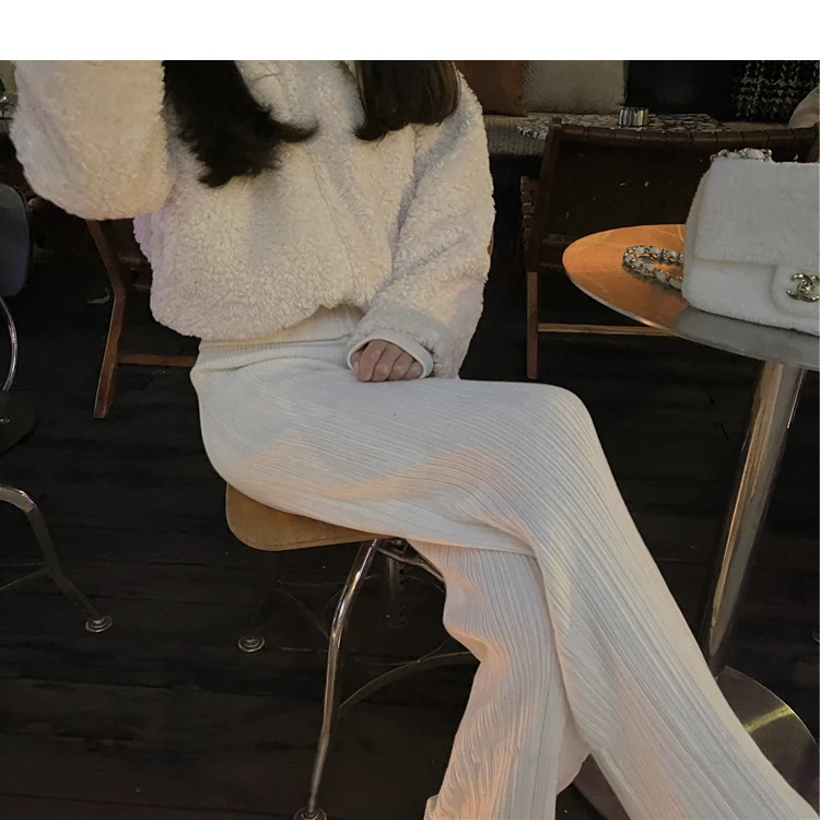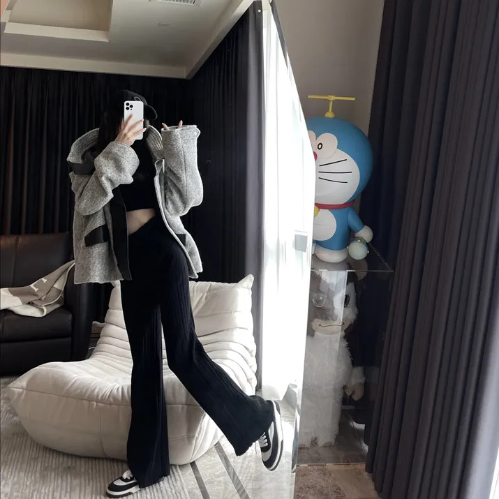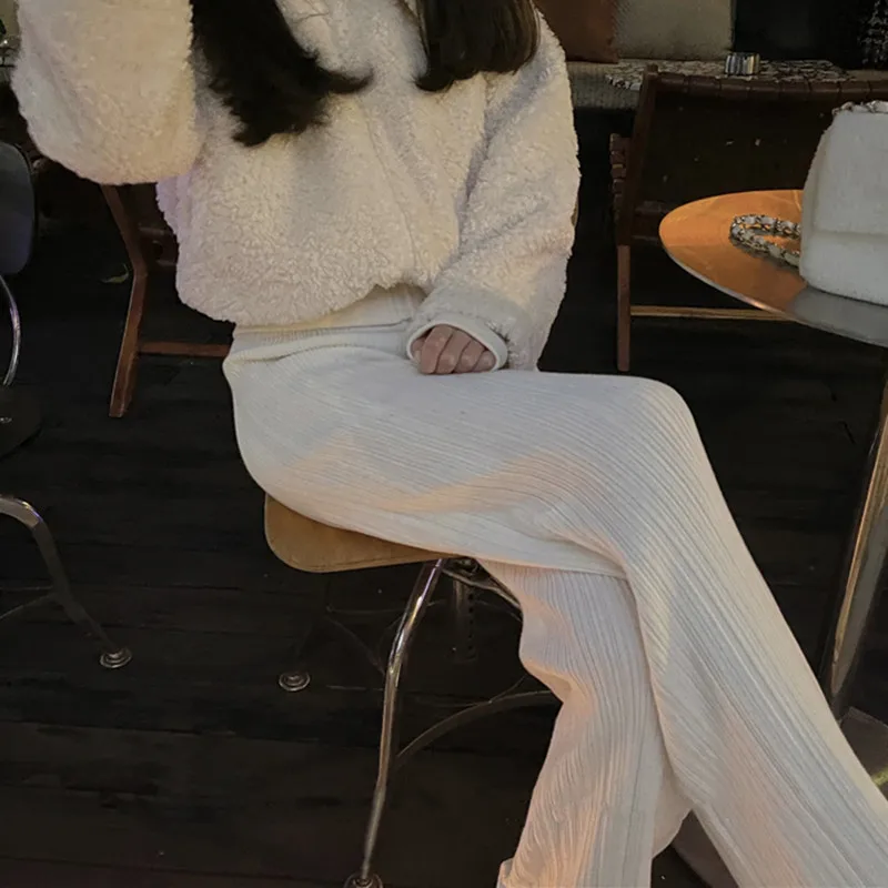 Pantaloni a gamba larga lavorati a maglia a vita alta da donna Inverno 2025 Nuovi pantaloni sottili Pantaloni dritti con pieghe verticali drappeggiate