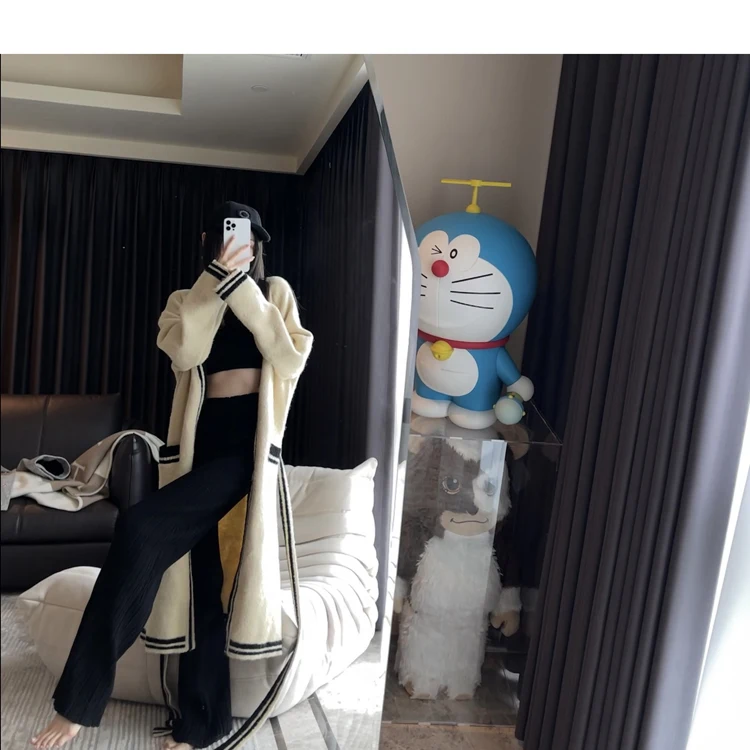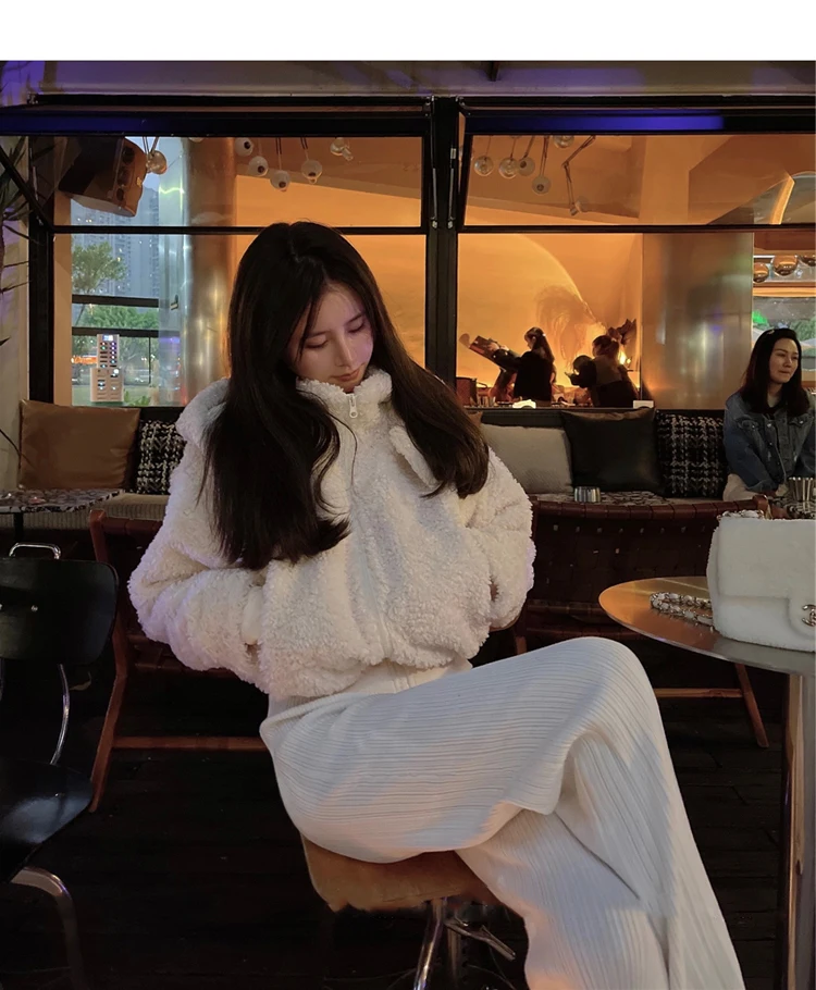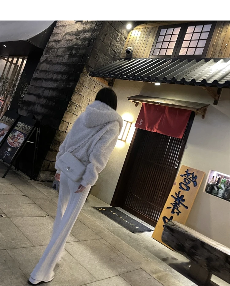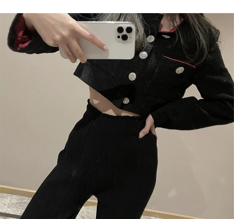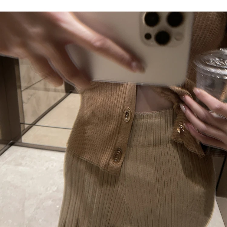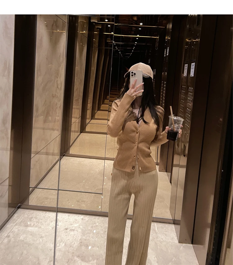 Pantaloni a gamba larga lavorati a maglia a vita alta da donna Inverno 2025 Nuovi pantaloni sottili Pantaloni dritti con pieghe verticali drappeggiate