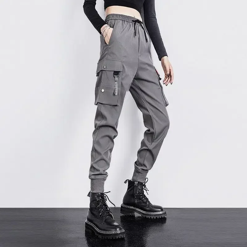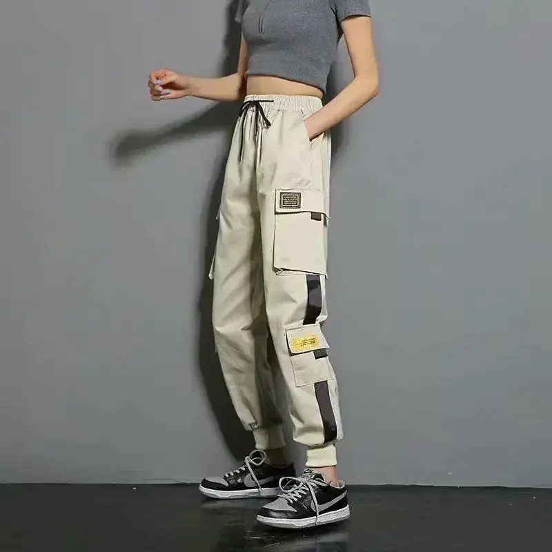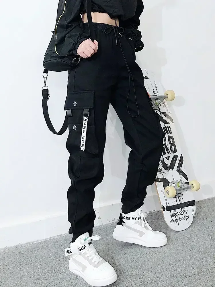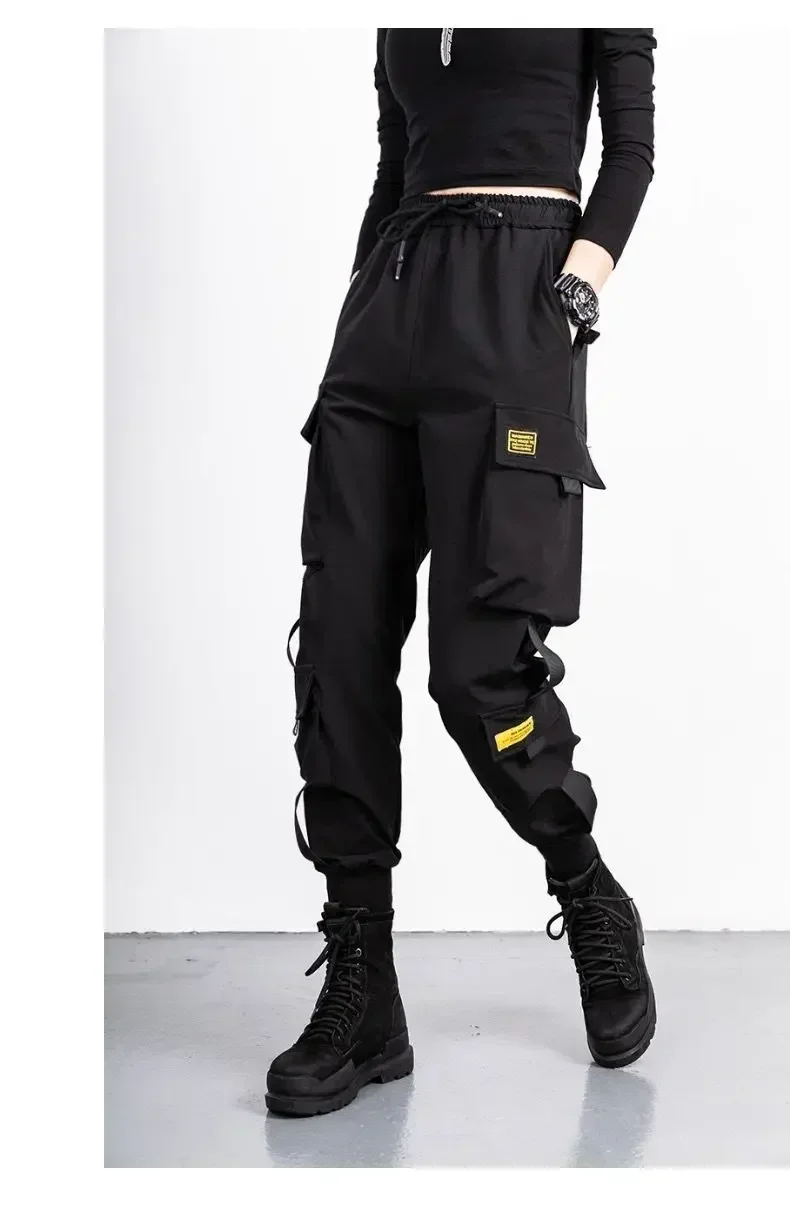 Pantaloni cargo da donna estivi Hip Hop Moda sportiva Pantaloni Harem coreani casual larghi Pantaloni da jogging neri con tasche multiple