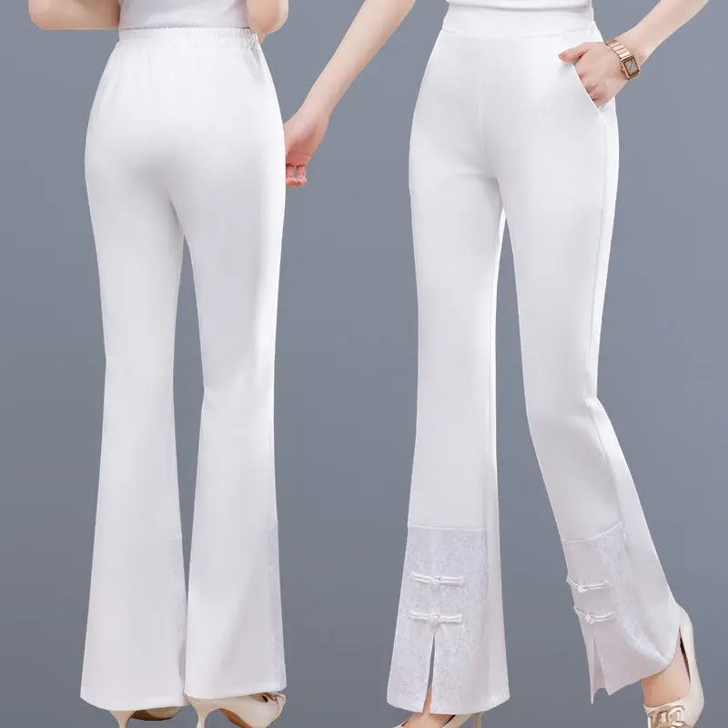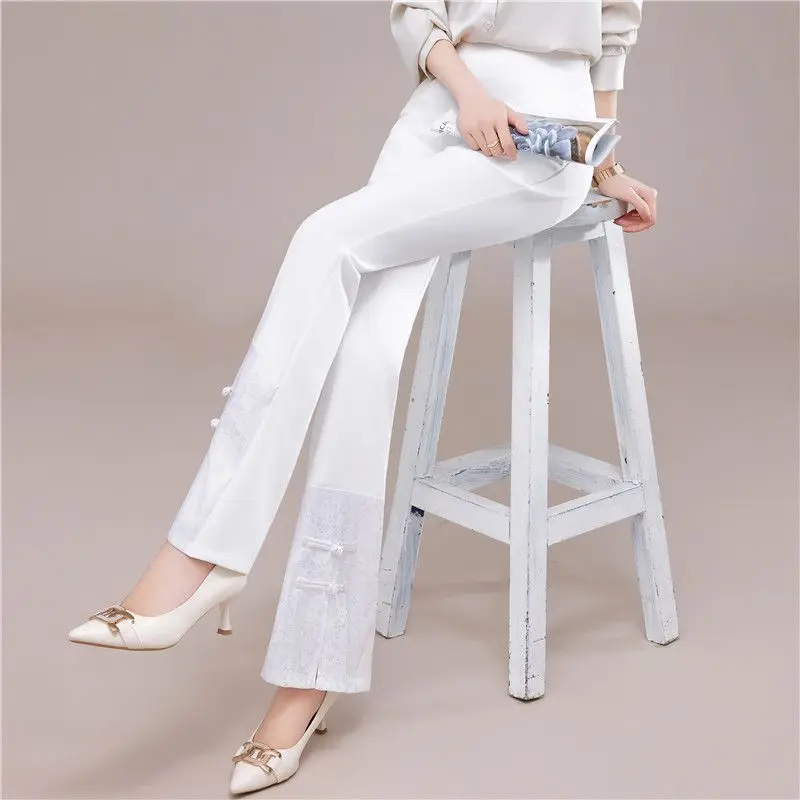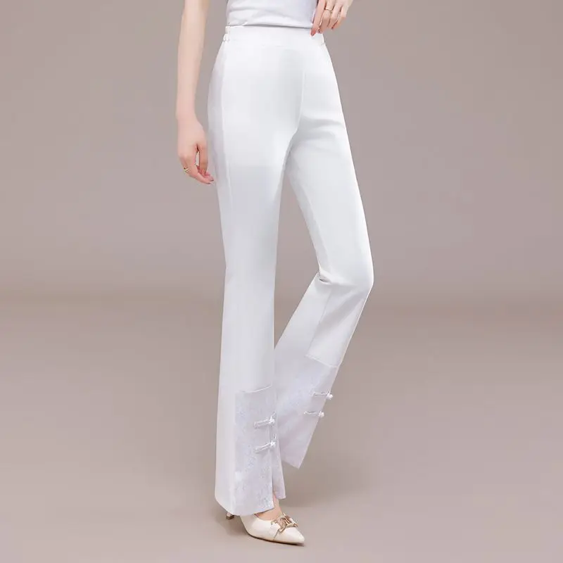 Pantaloni casual da donna Pantaloni svasati in chiffon slim fit Pantaloni da donna in raso Abbigliamento slim fit Set a vita alta Autunno Nuovo articolo W48