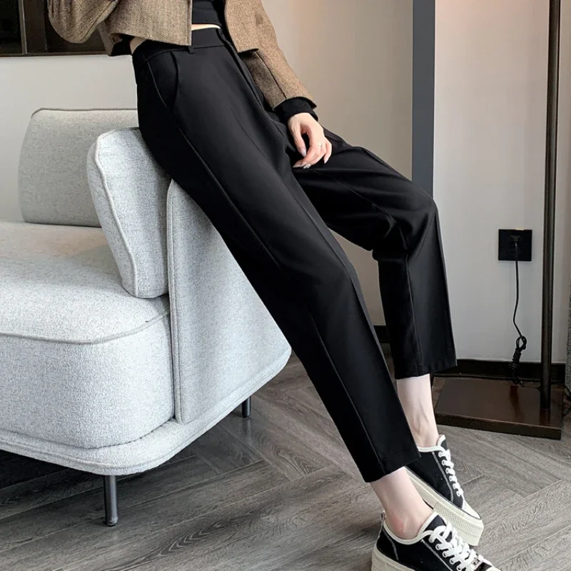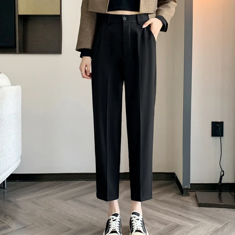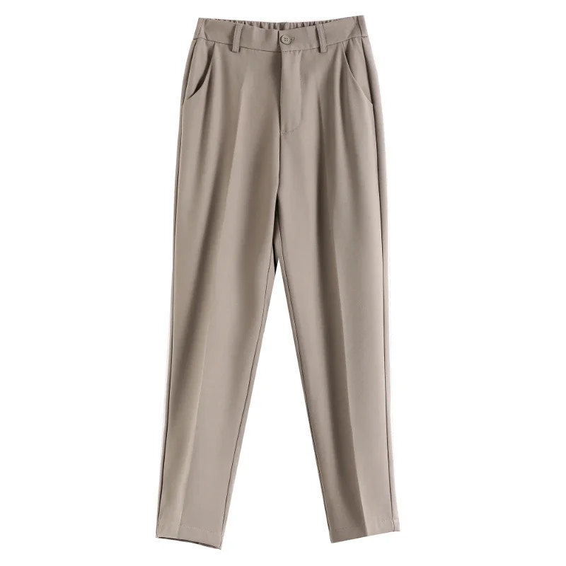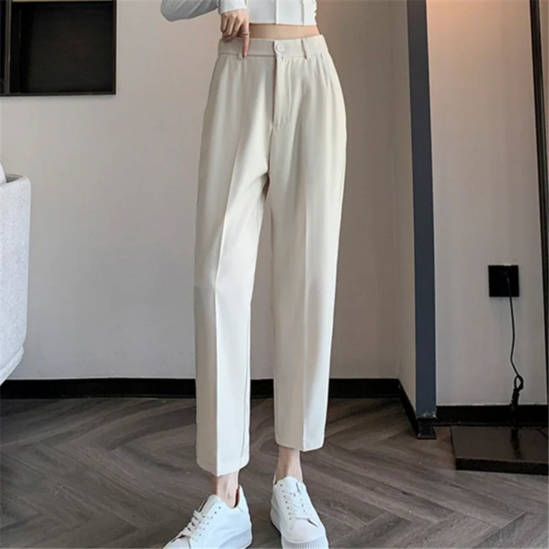 Pantaloni da abito a vita alta da donna 2024 Primavera Estate Bottone solido Casual Allentato alla caviglia Pantaloni da lavoro kaki da donna