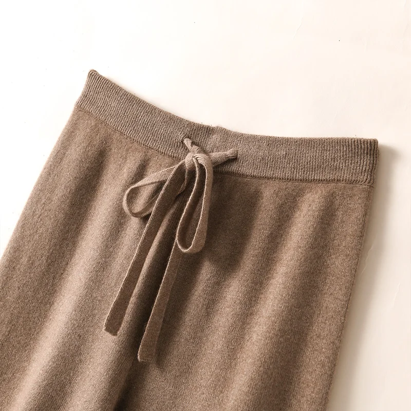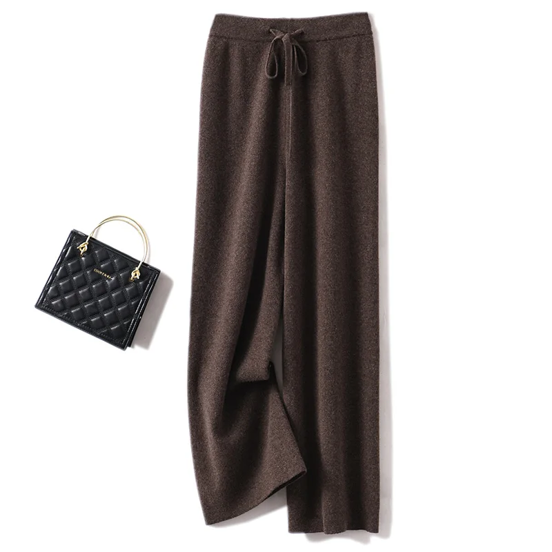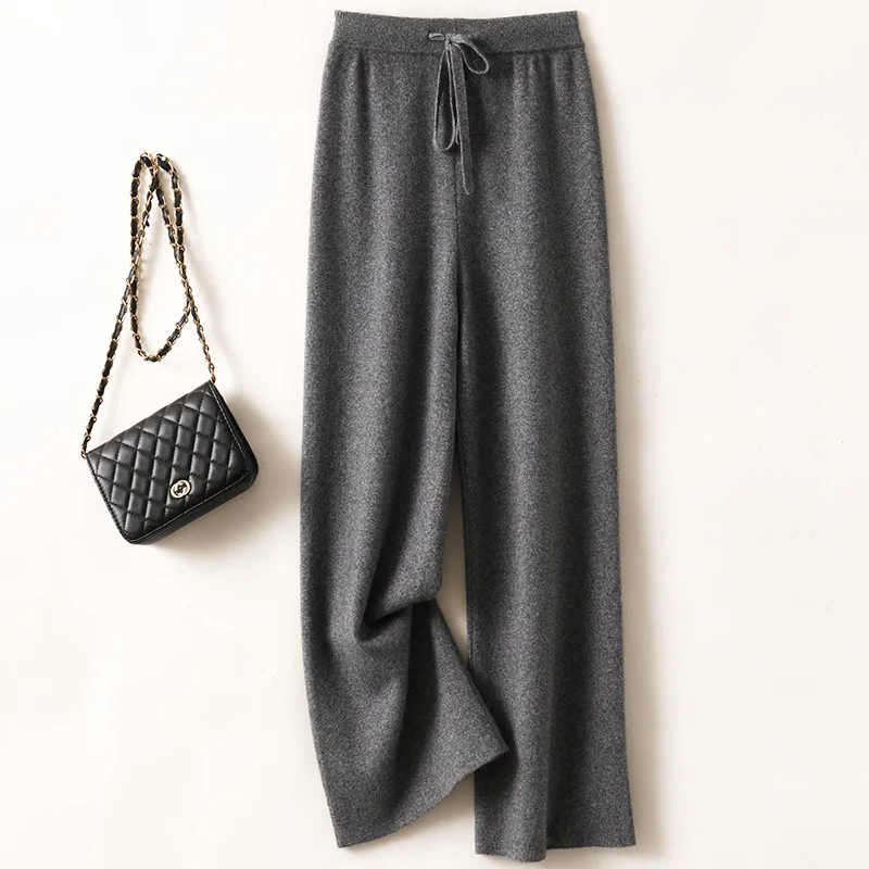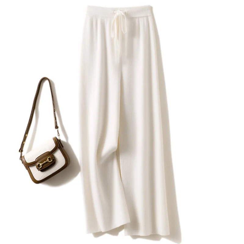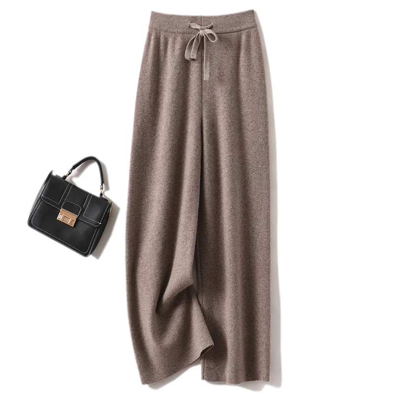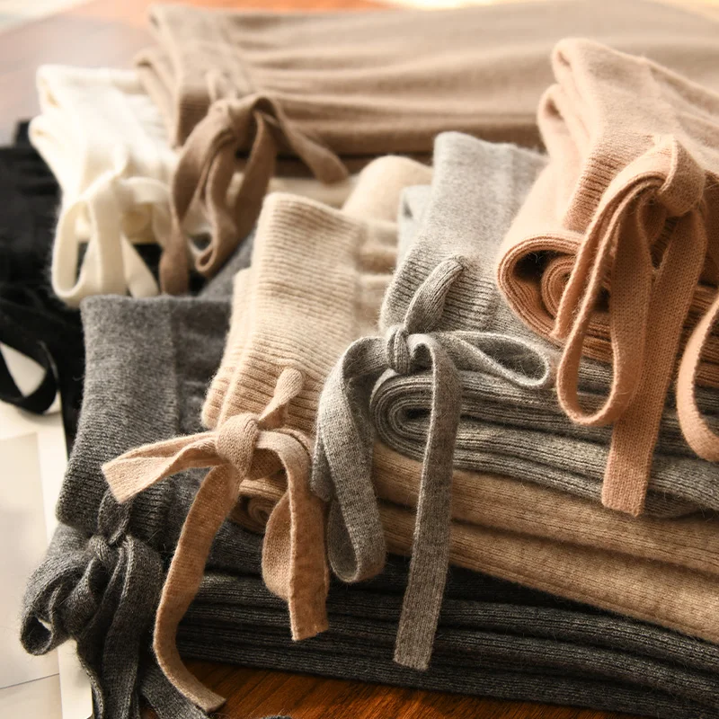 Pantaloni da donna autunno inverno Pantaloni basic morbidi casual con fascia 100% lana merino Maglieria Pantaloni popolari coreani
